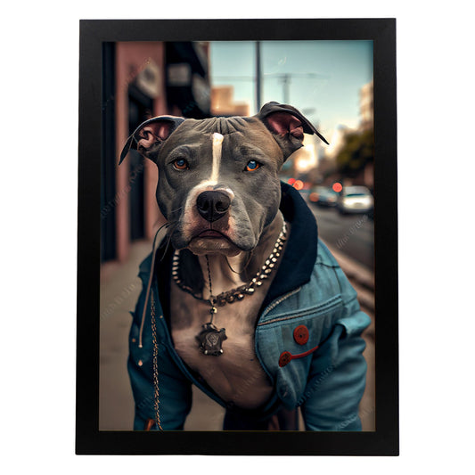 Lámina Nacnic Bullmastiff Optimista en Estilo Fotografía Colorida con Ropa Humana