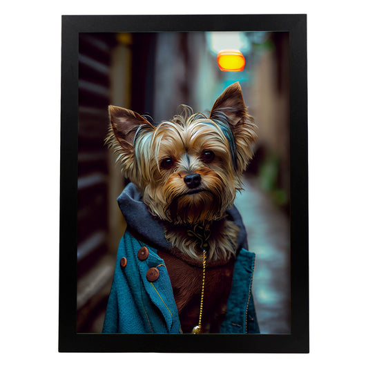 Lámina Nacnic de Yorkshire Terrier con Ropa Humana en Estilo Fotográfico