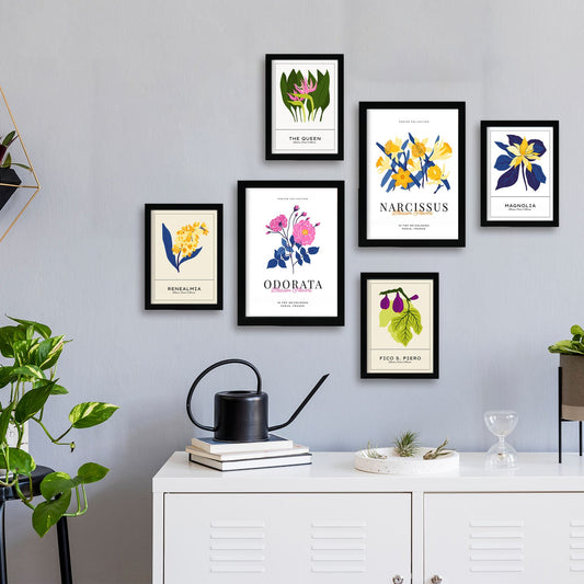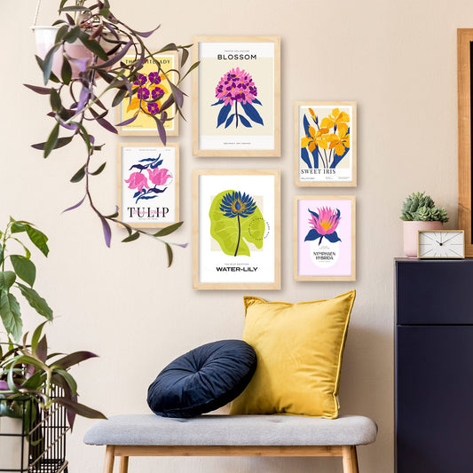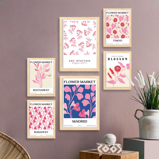 Set de 6 láminas minimalistas en tonos pastel con ilustraciones botánicas, paisajes y plantas para hogar, oficina o estudio – 2 grandes y 4 medianos