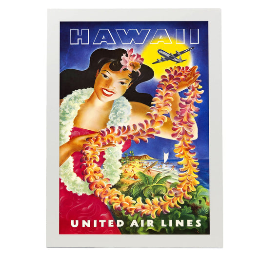 Lamina Hawaii United Air Lines con Chica Hawaiana