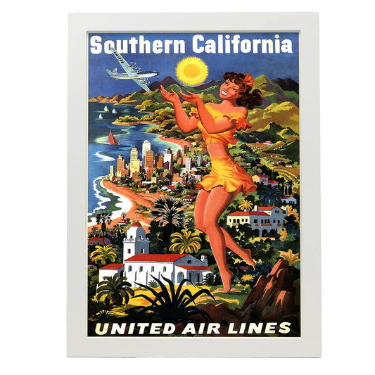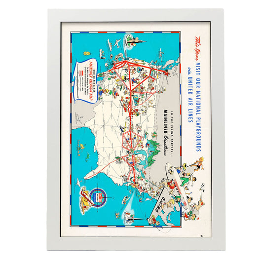 Lámina Mapa de Vacaciones United Air Lines Mainliner