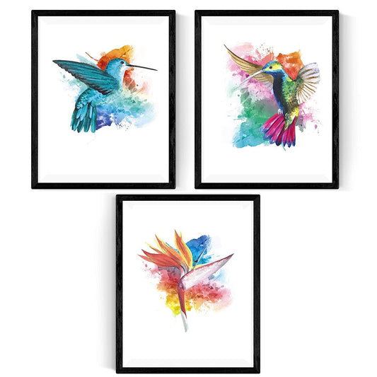 Set de 3 láminas acuarela de elefante, oso panda y oso hormiguero