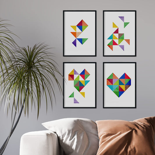 Set de 4 láminas geométricas de CORAZÓN estilo nordico