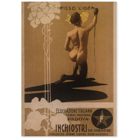 Póster Vintage de Pintor Desnudo con Imágenes Antiguas