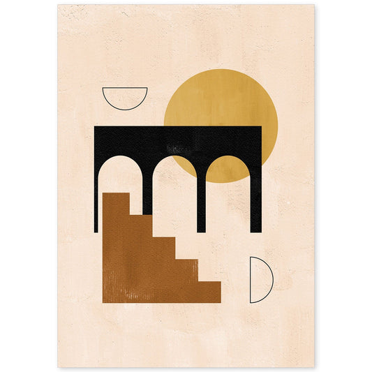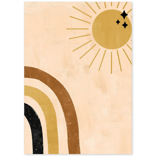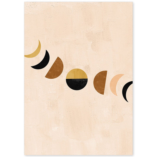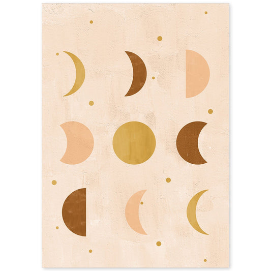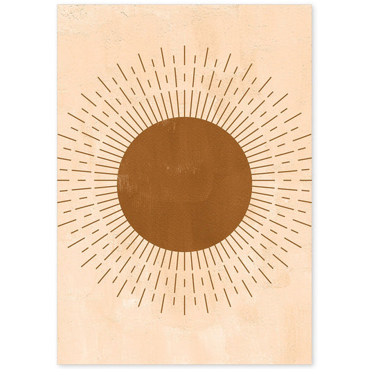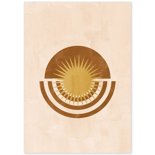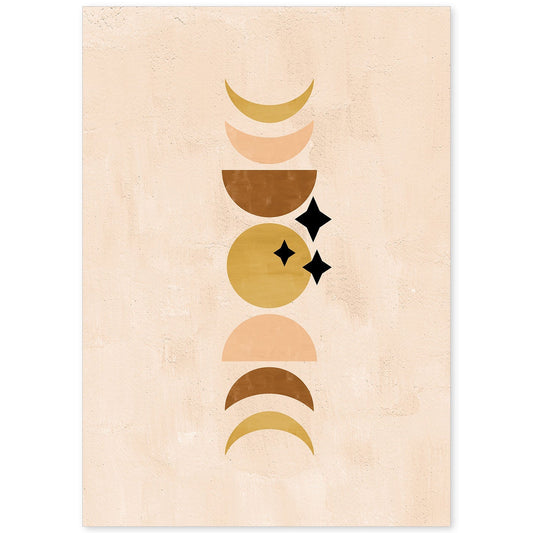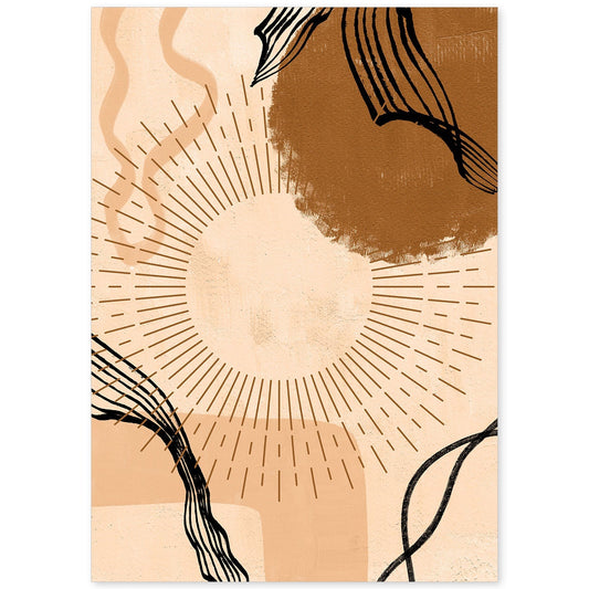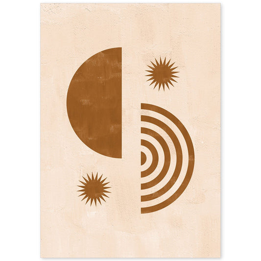 Poster Abstracto de Soles y Lunas Celestiales en Tonos Marrones