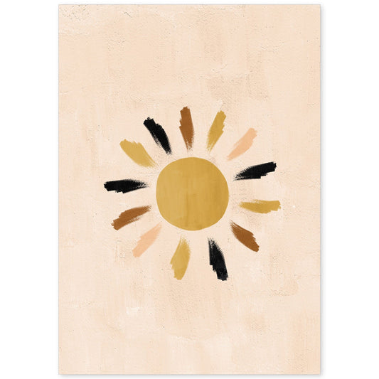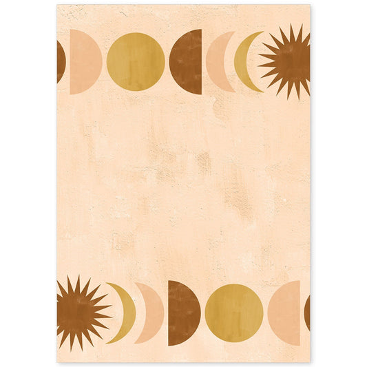 Lámina abstracta de soles y lunas en tonos marrones