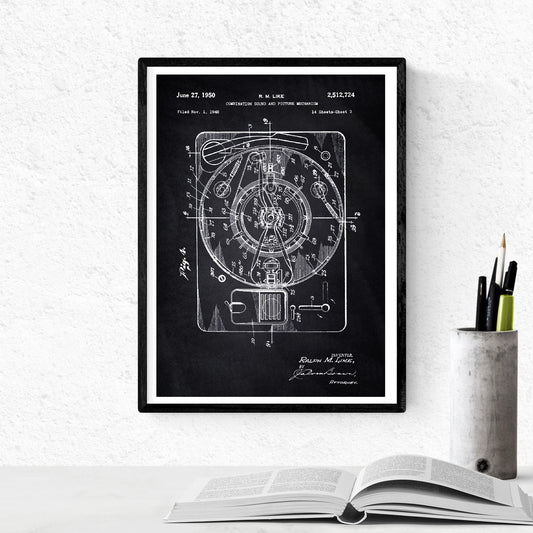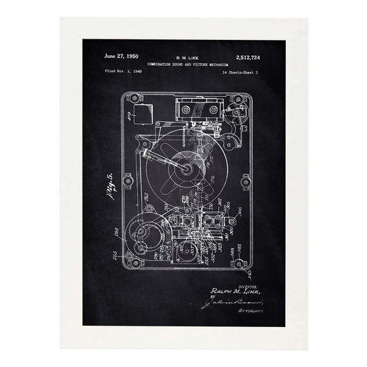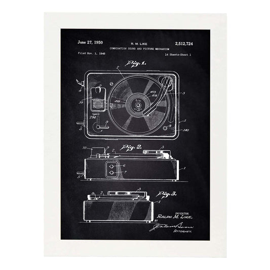 Set de Láminas Patentes de Tocadiscos Antiguas en Negro