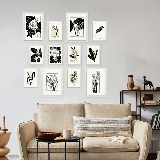 Conjunto de 12 láminas botánicas de diseño exquisito y arte de pared