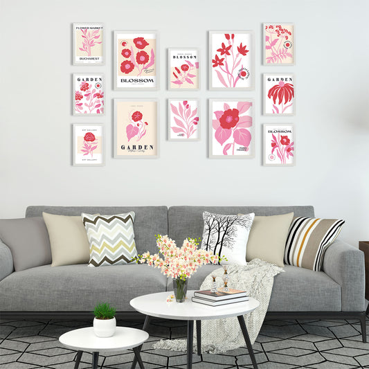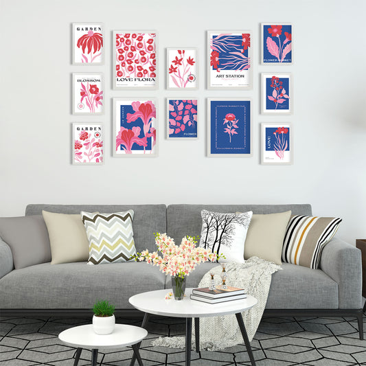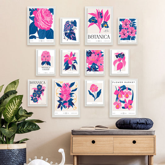 Conjunto de 12 Láminas Botánicas Elegantes con Marco de Color