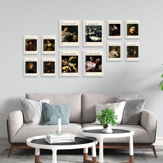 Conjunto de 12 láminas de Caravaggio y Rembrandt en distintos colores