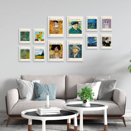 Conjunto de láminas de arte de Klimt y Van Gogh - 12 piezas, estilo de pintores famosos, colores vibrantes
