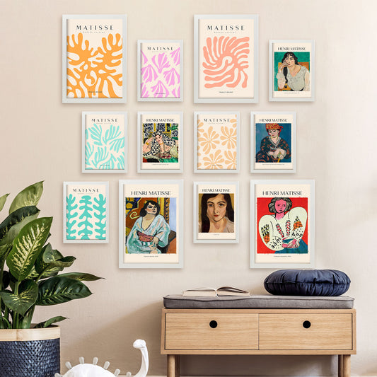 Conjunto de láminas de arte Matisse y Miró - 12 piezas - Estilo pintor famoso - Marcos surtidos