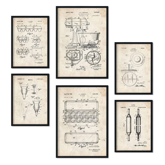 Set de 6 láminas de patentes de herramientas de cocina retro