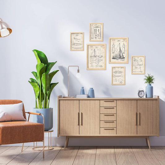 Set de 6 láminas de patentes Barco con dibujos retro de inventos antiguos