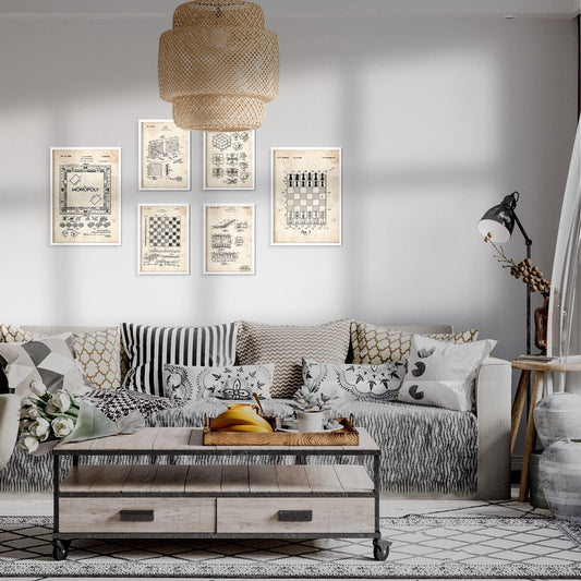 Set de 6 láminas de patentes de Juegos de mesa retro