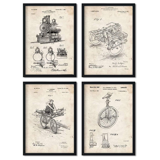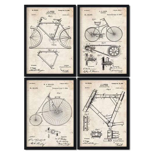 Pack Vintage de 4 Láminas de Patentes de Bicicletas Antiguas
