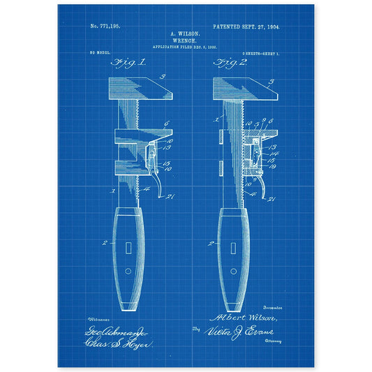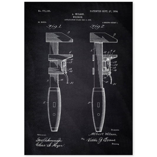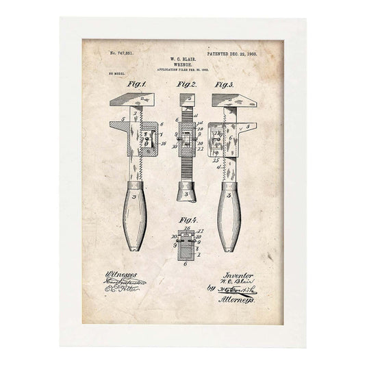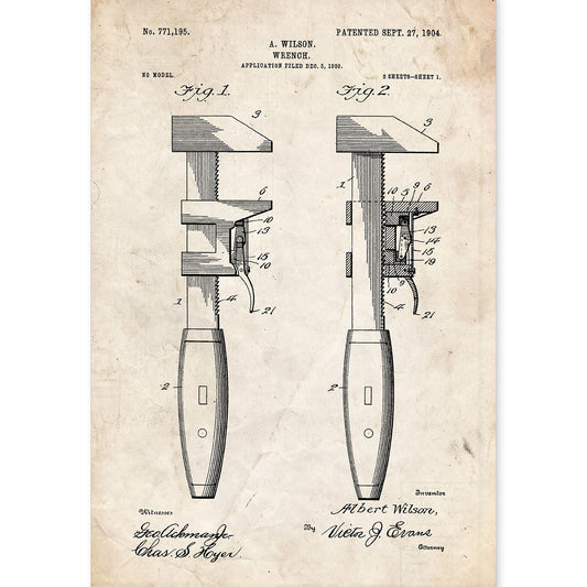 Lámina de Patente de Llave Inglesa 3 Antigua
