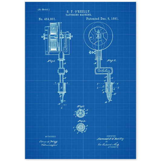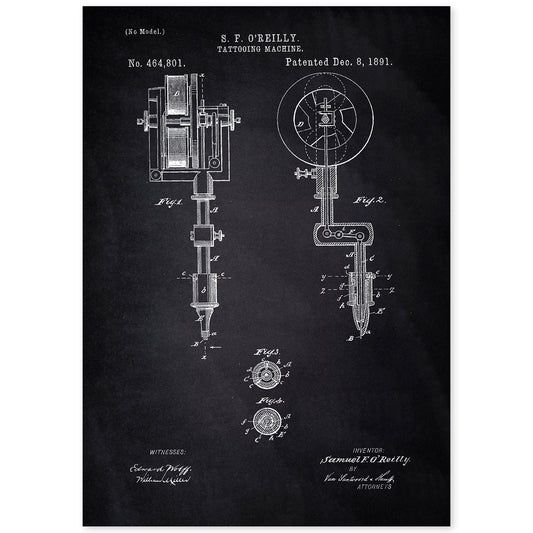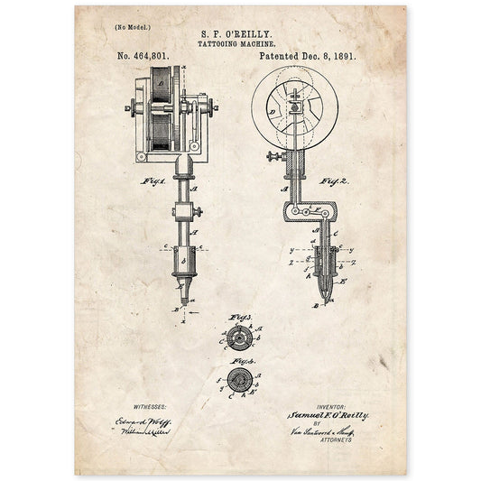 Lámina de Patente de Máquina de Tatuajes Antigua