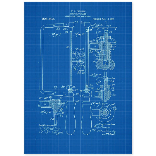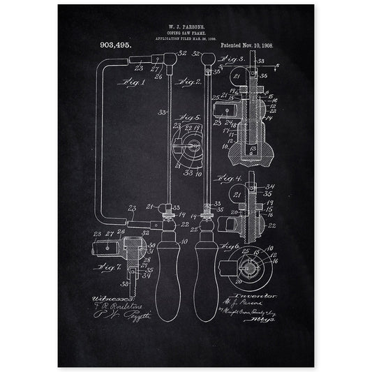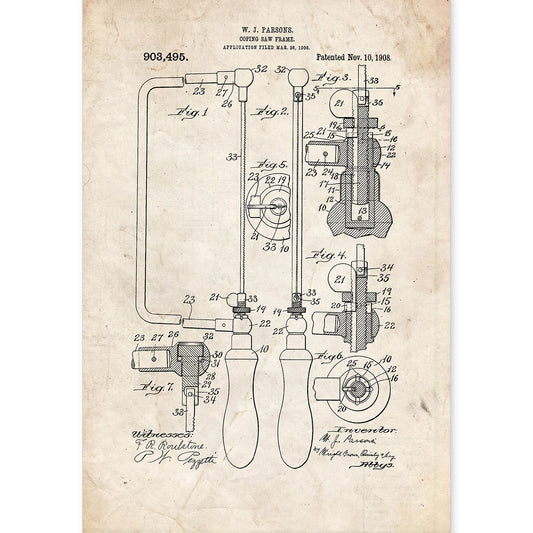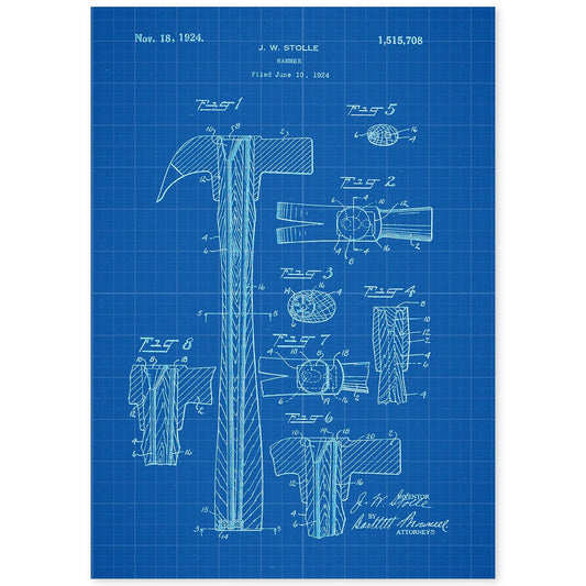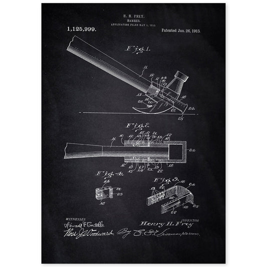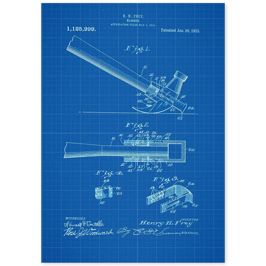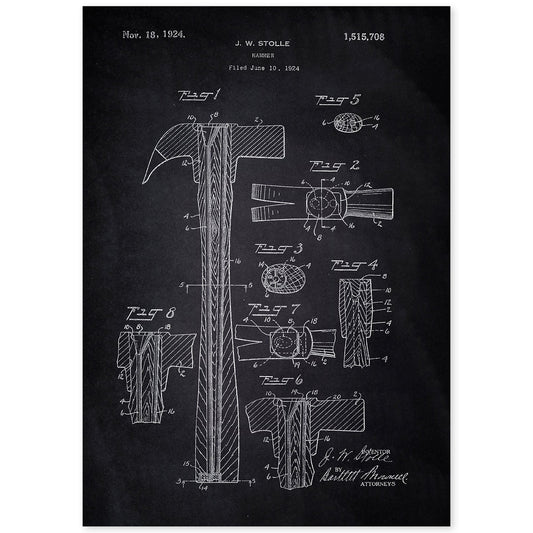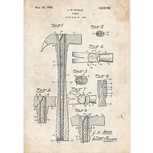 Lámina de Patente de Martillo con Diseños de Inventos Famosos