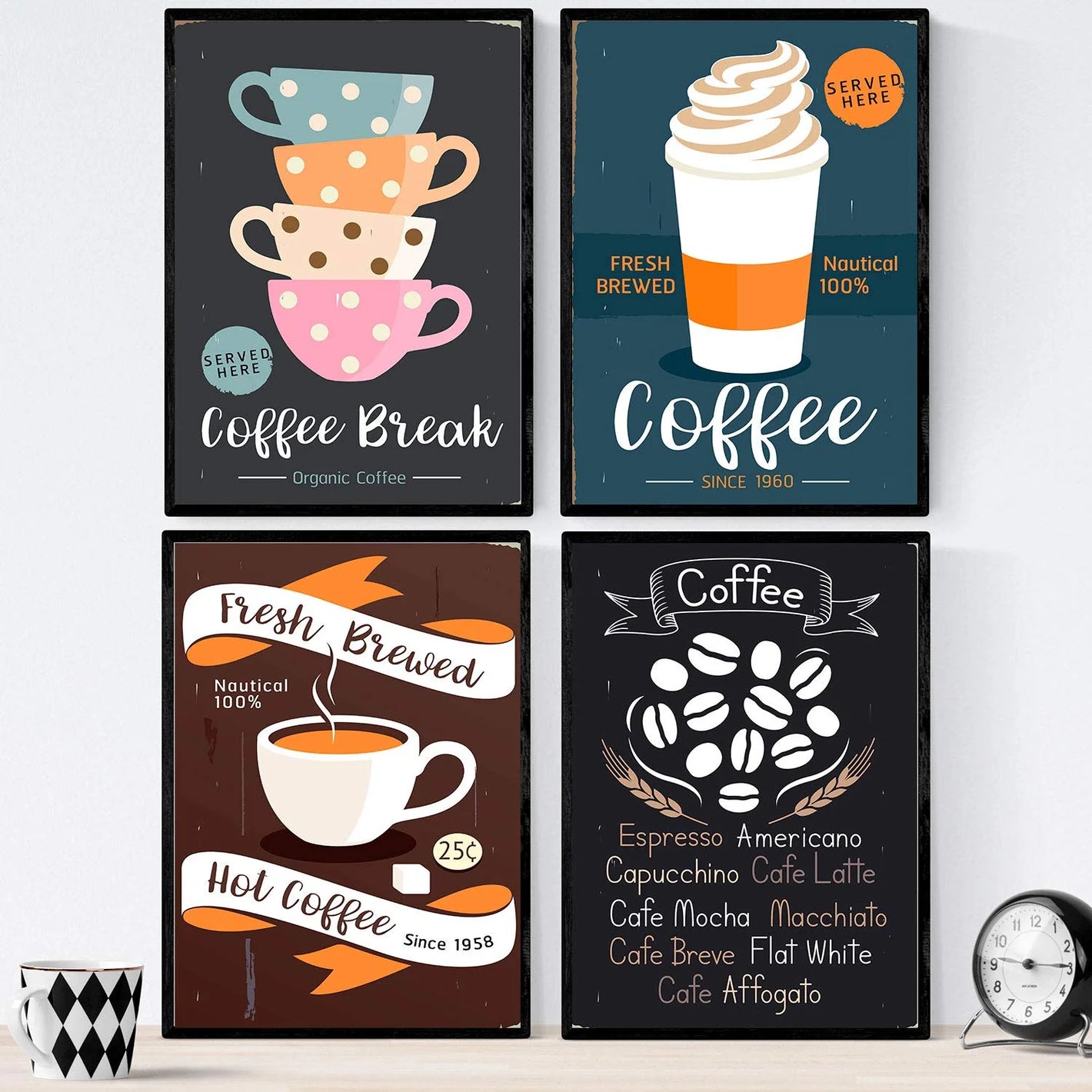 Láminas decorativas con motivos de cafés perfectas para cocinas, bares, restaurantes... Diseños impresos con tintas vibrantes y llenas de color para añadir un toque de elegancia a cualquier espacio. Están disponibles en una variedad de tamaños para adaptarse a cualquier espacio y con una gama de colores para completar el look de su decoración. Estas láminas son un gran regalo para los amantes del café y los amantes de la decoración.