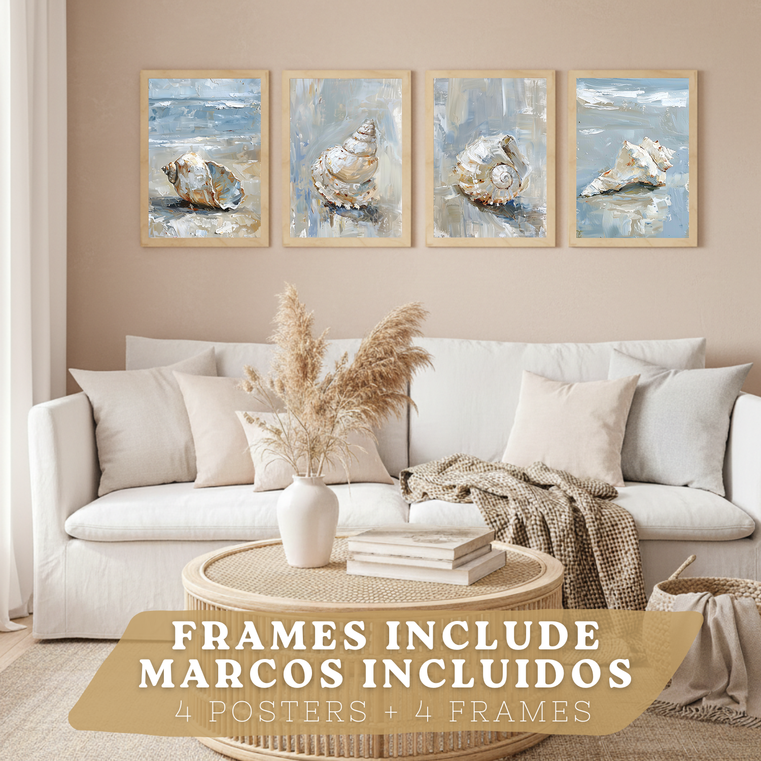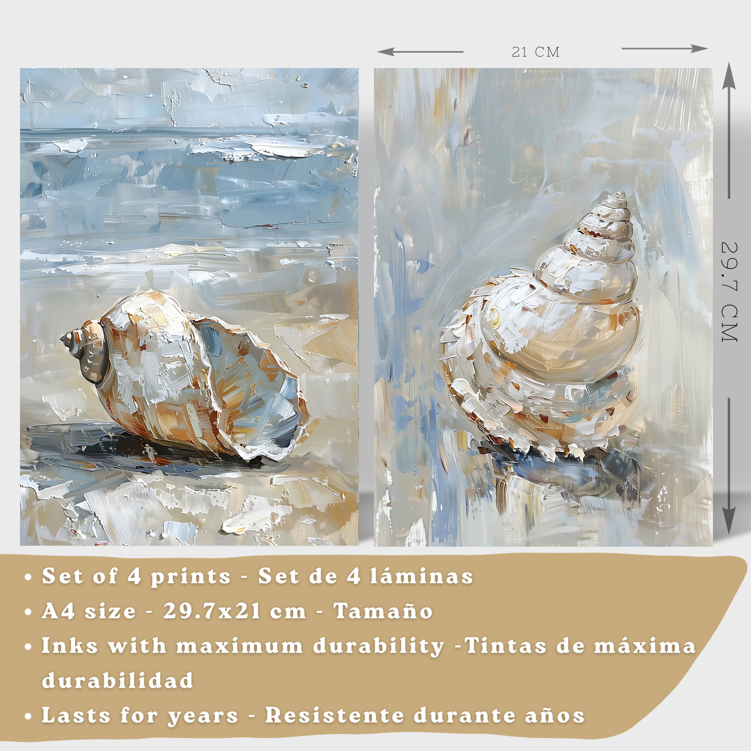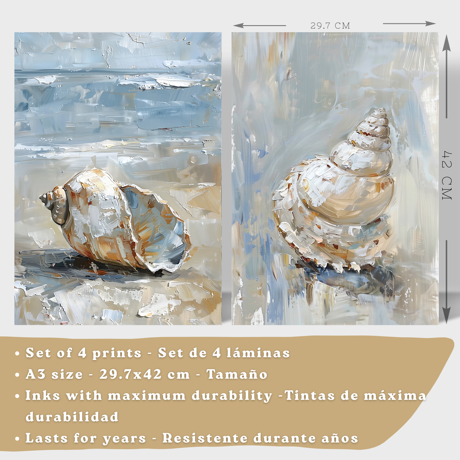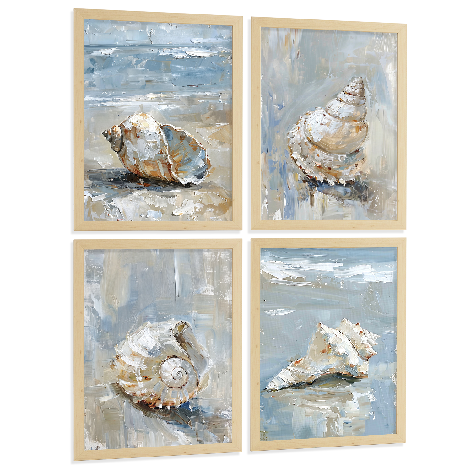Nacnic Juego De 3 Cuadros De Playa, Mar, Costa Azul. Decoracion De Pared De Arte. Conchas Marinas. Laminas Decorativas Pared Baño, Cocina,Salón Y Dormitorio