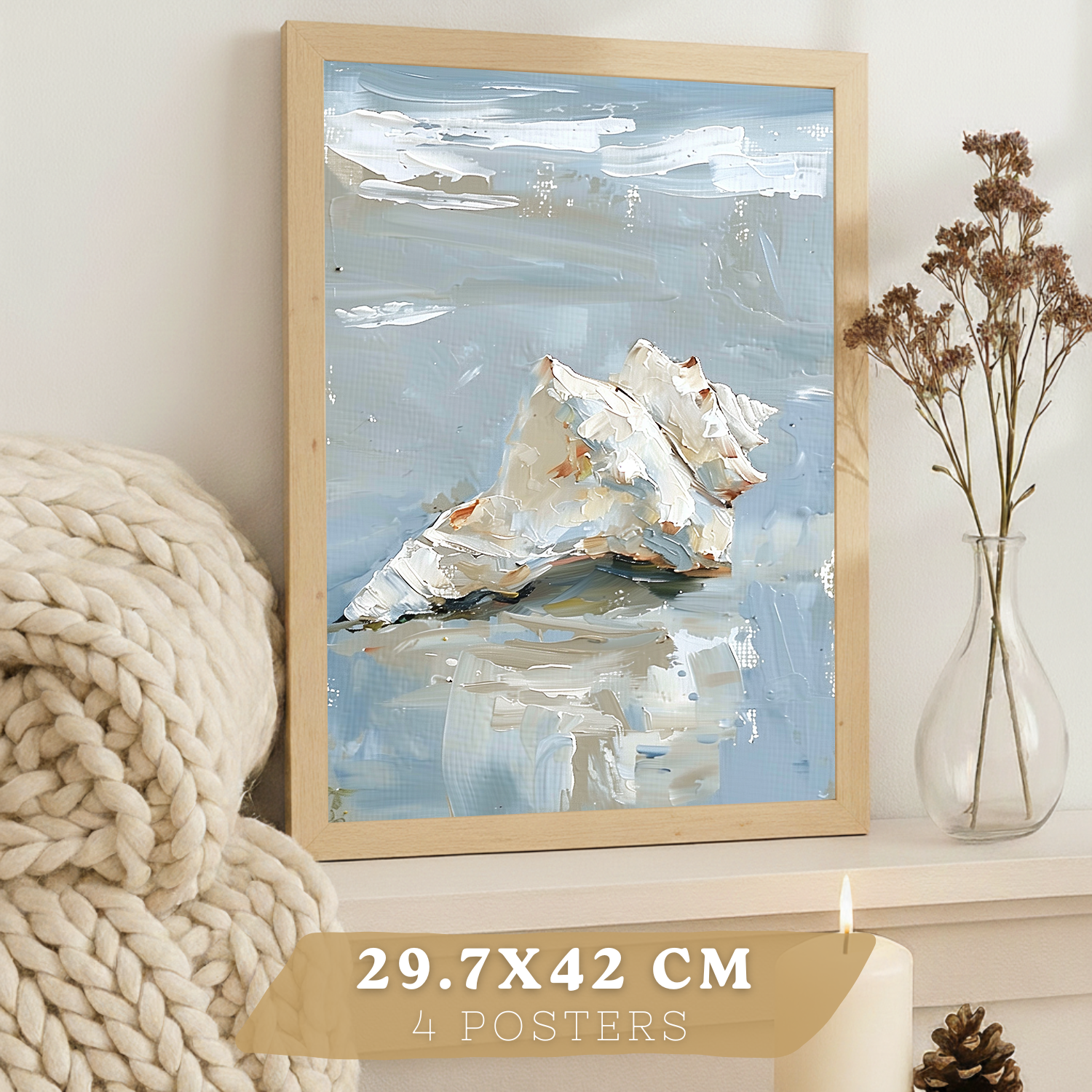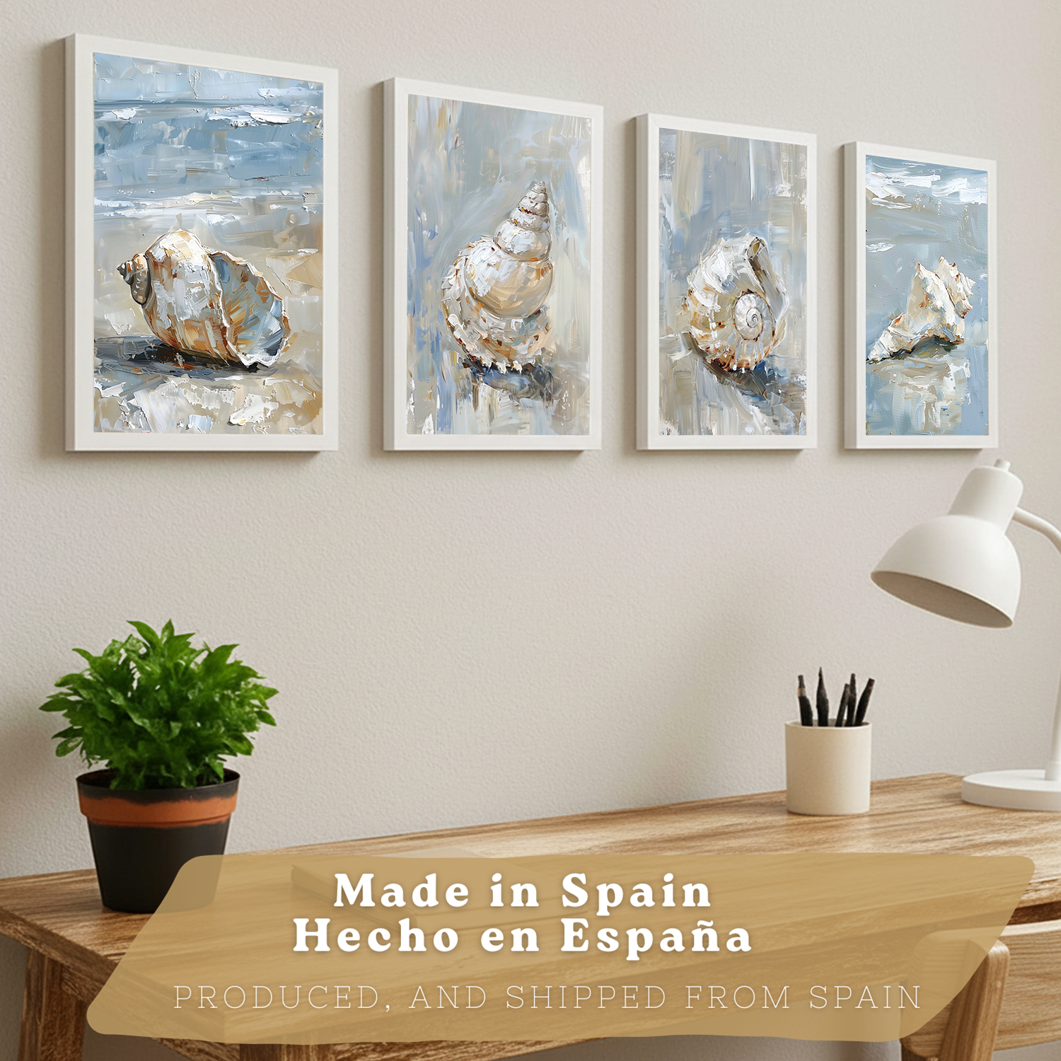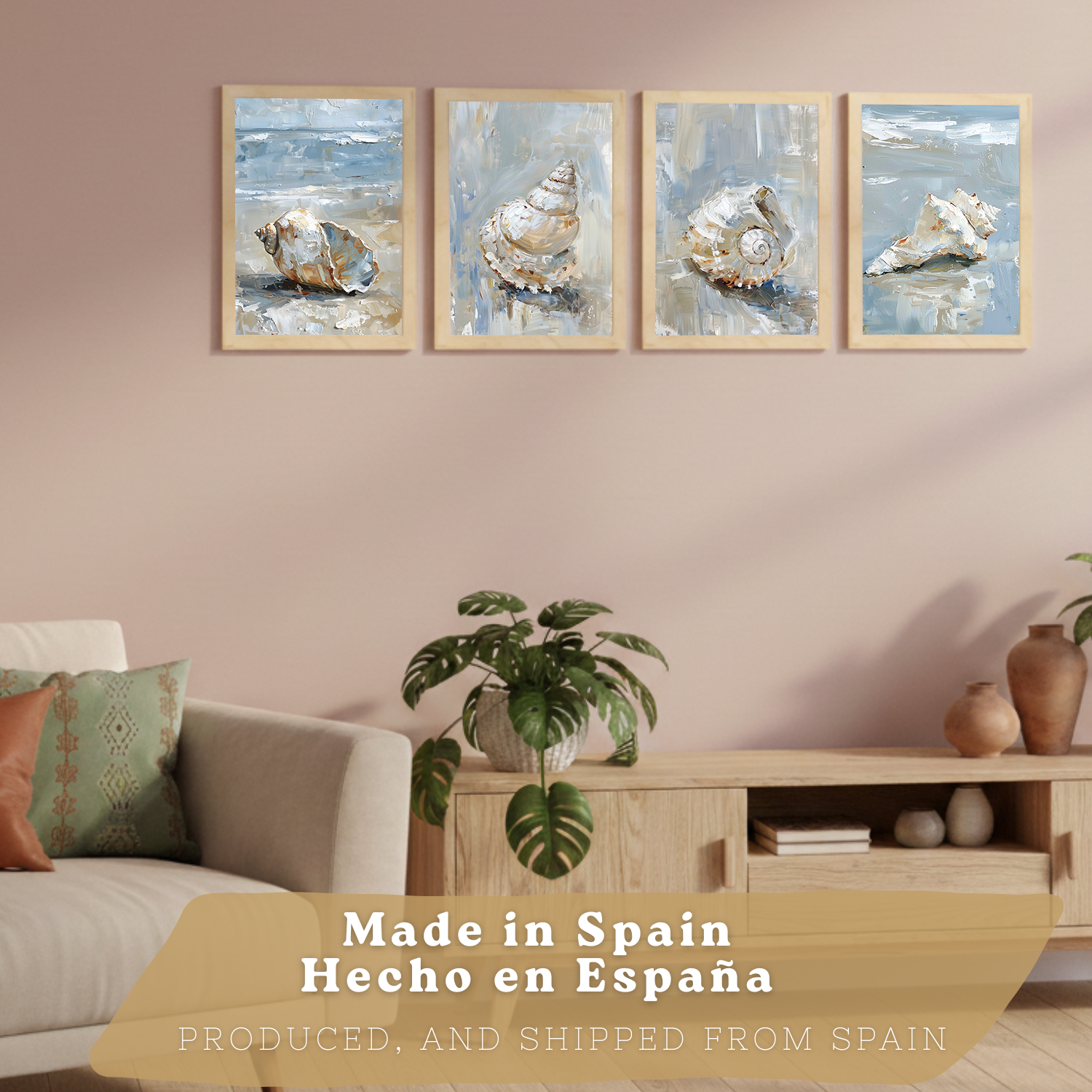 Nacnic Juego De 3 Cuadros De Playa, Mar, Costa Azul. Decoracion De Pared De Arte. Conchas Marinas. Laminas Decorativas Pared Baño, Cocina,Salón Y Dormitorio