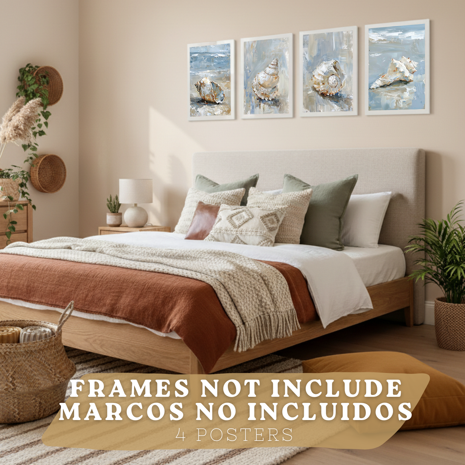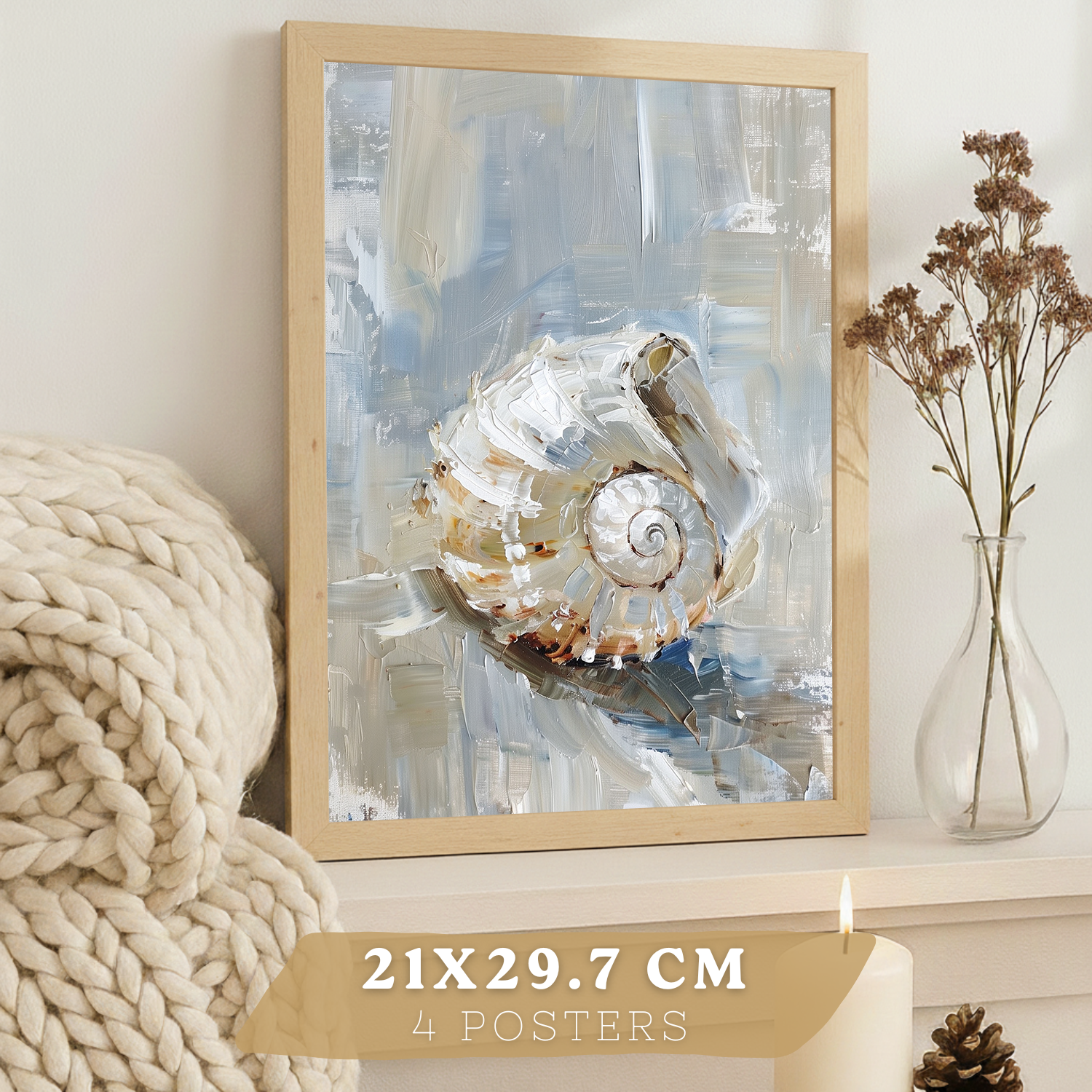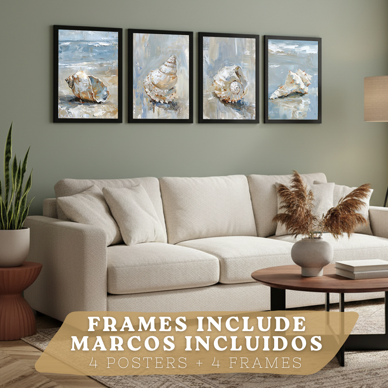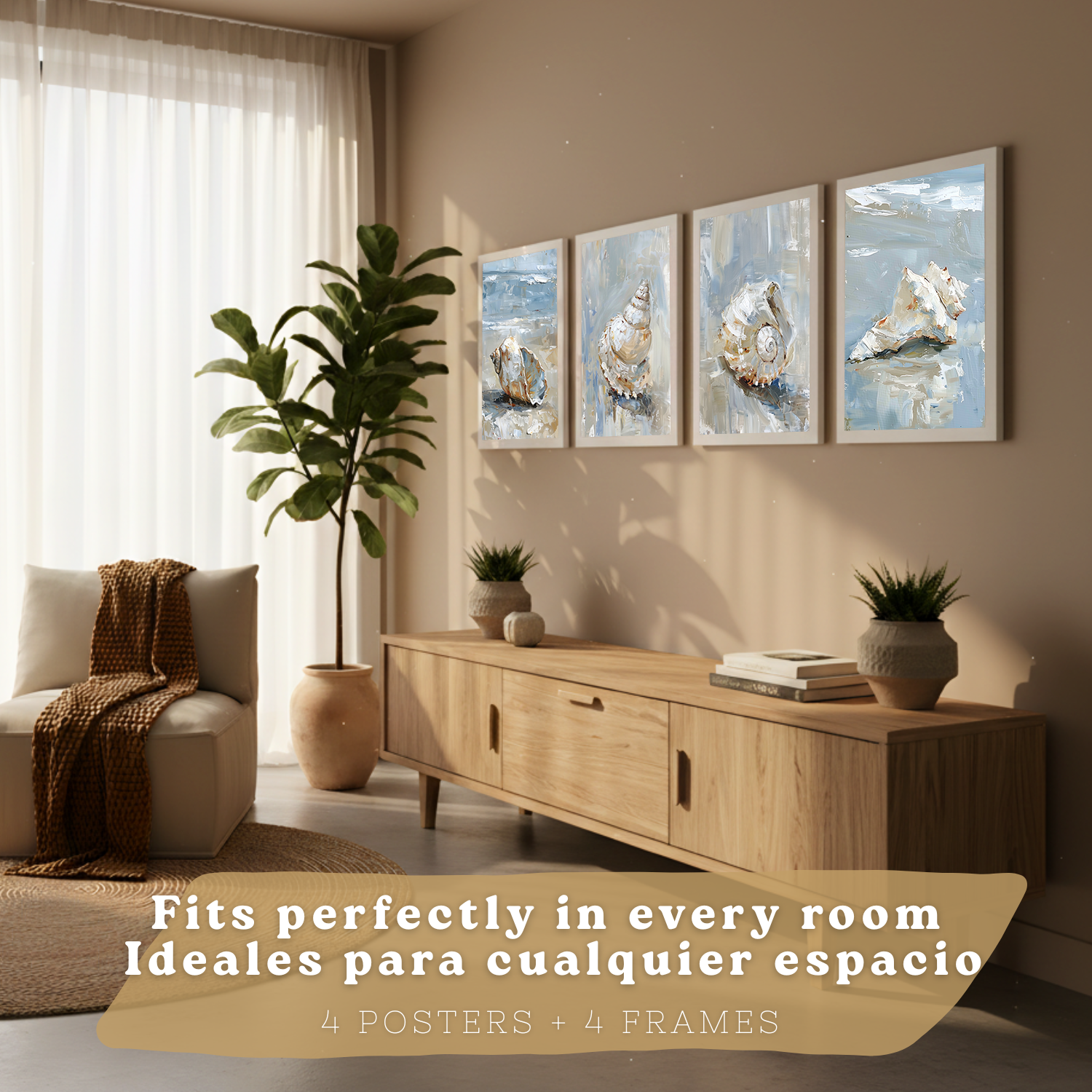 Nacnic Juego De 3 Cuadros De Playa, Mar, Costa Azul. Decoracion De Pared De Arte. Conchas Marinas. Laminas Decorativas Pared Baño, Cocina,Salón Y Dormitorio