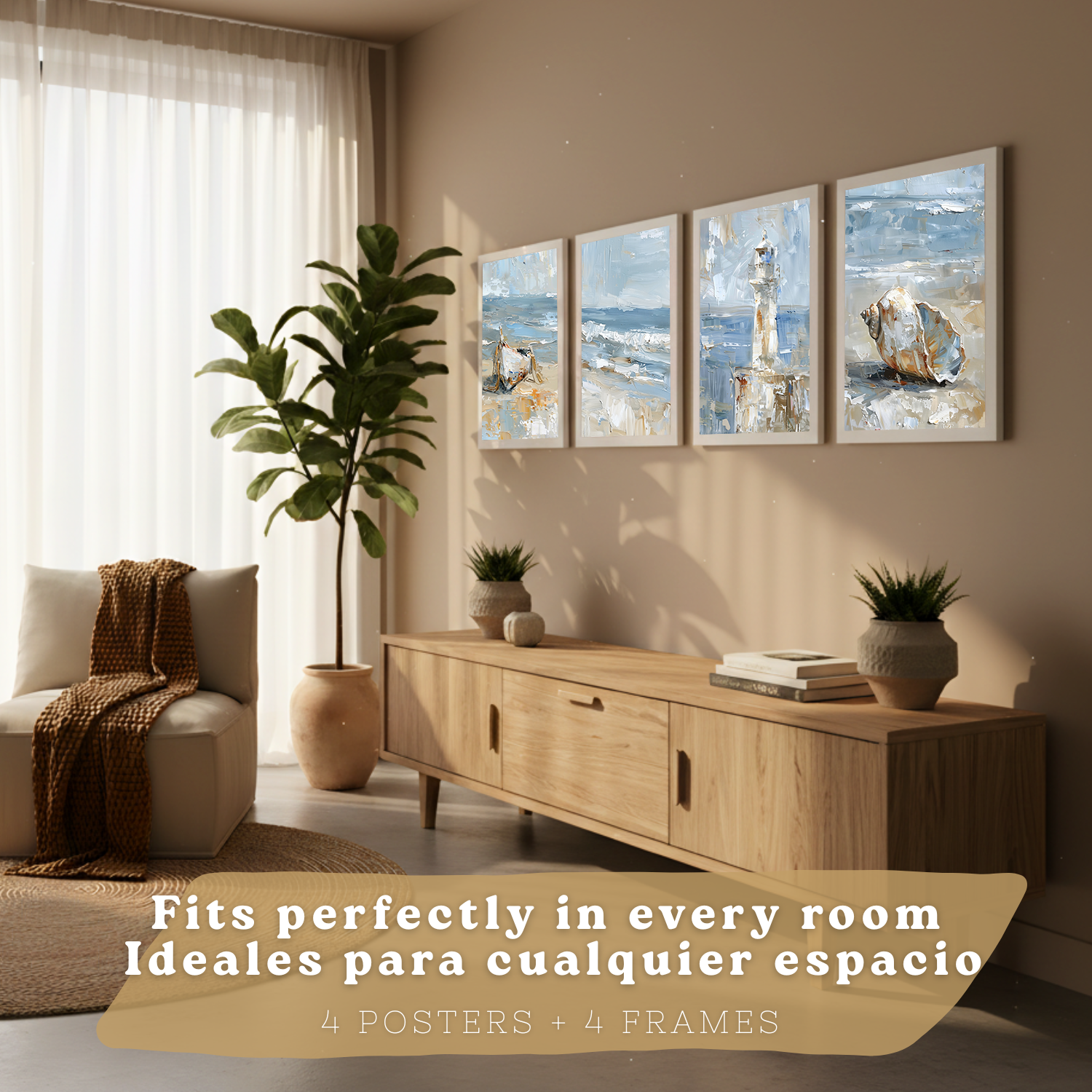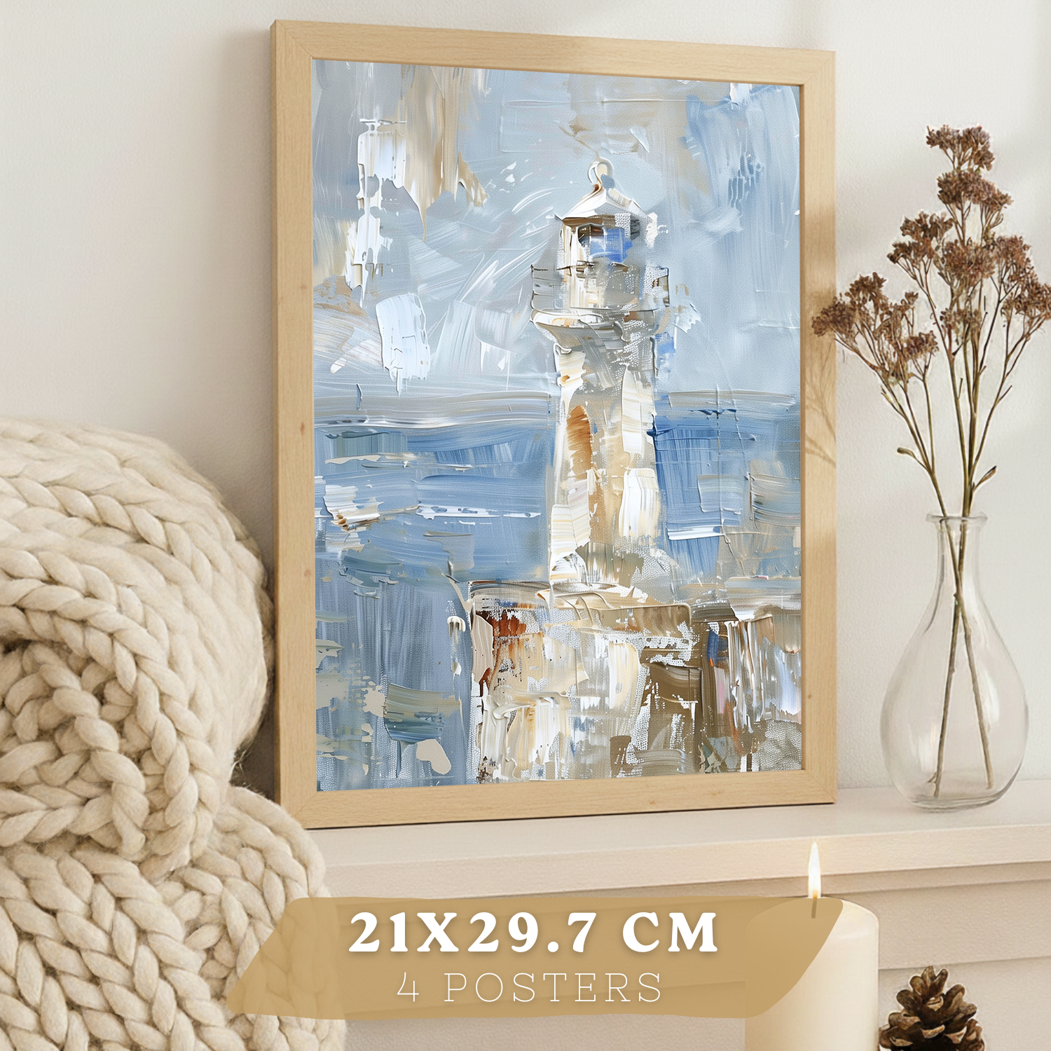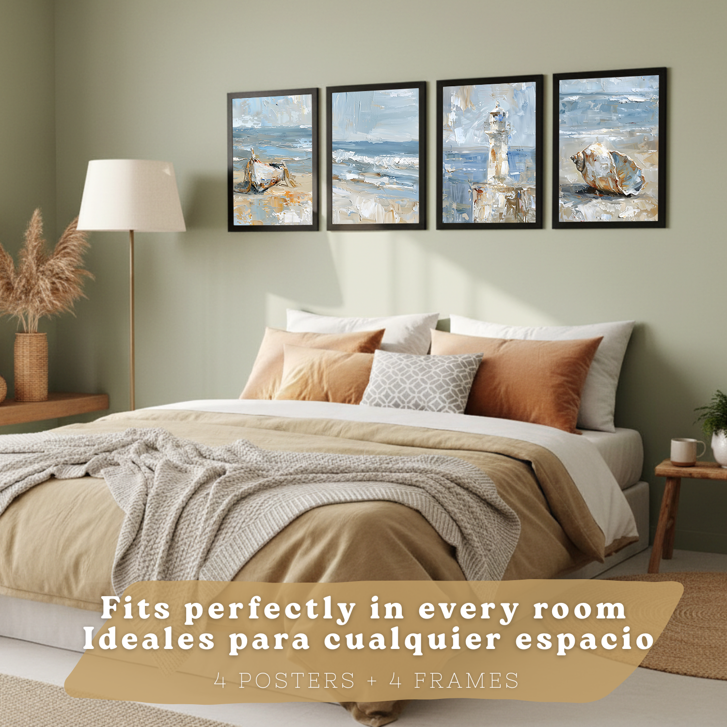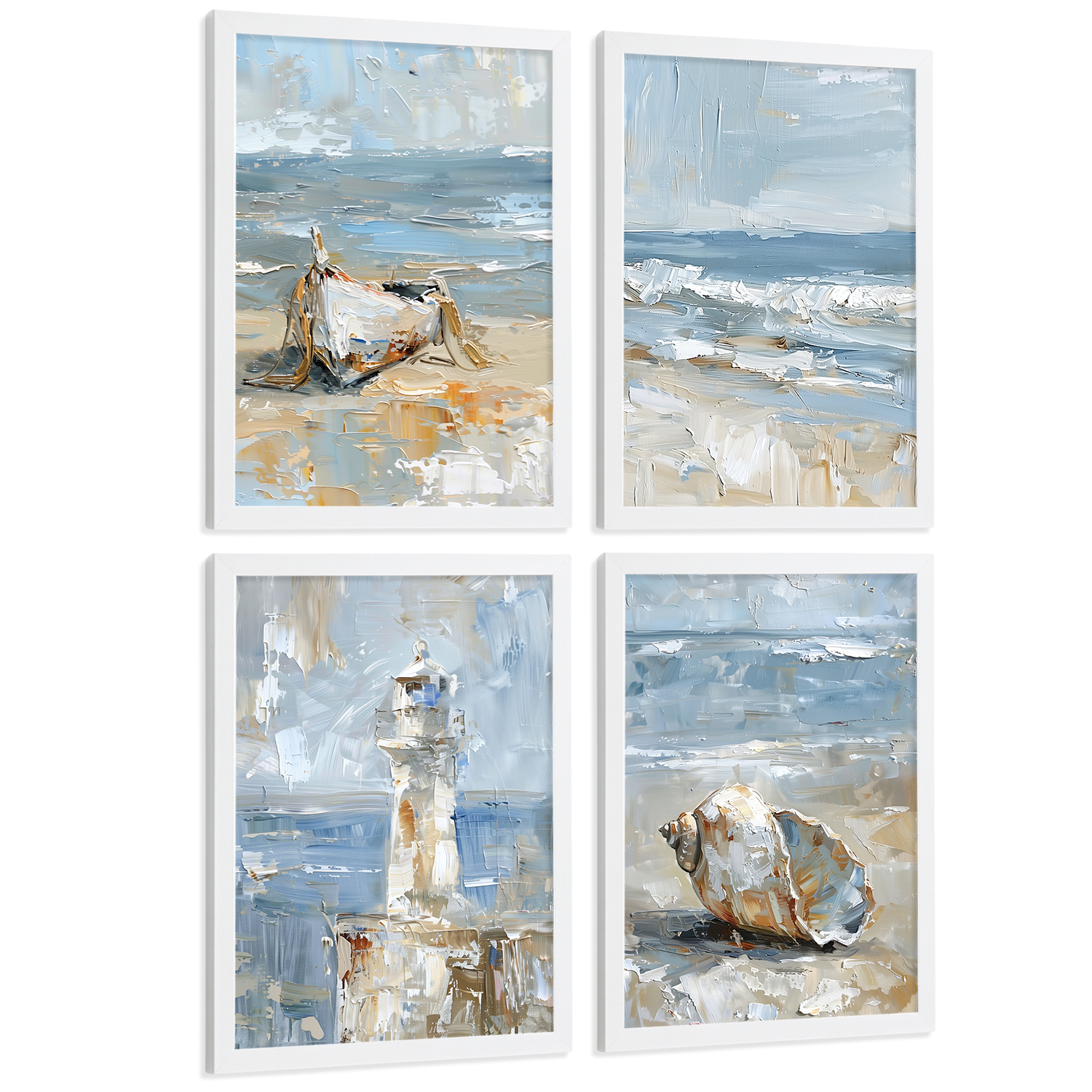 Nacnic Juego De 3 Cuadros De Playa, Mar, Costa Azul, Faro, Barca. Decoracion De Pared De Arte. Dia De Mar. Laminas Decorativas Pared Baño, Cocina,Salón Y Dormitorio