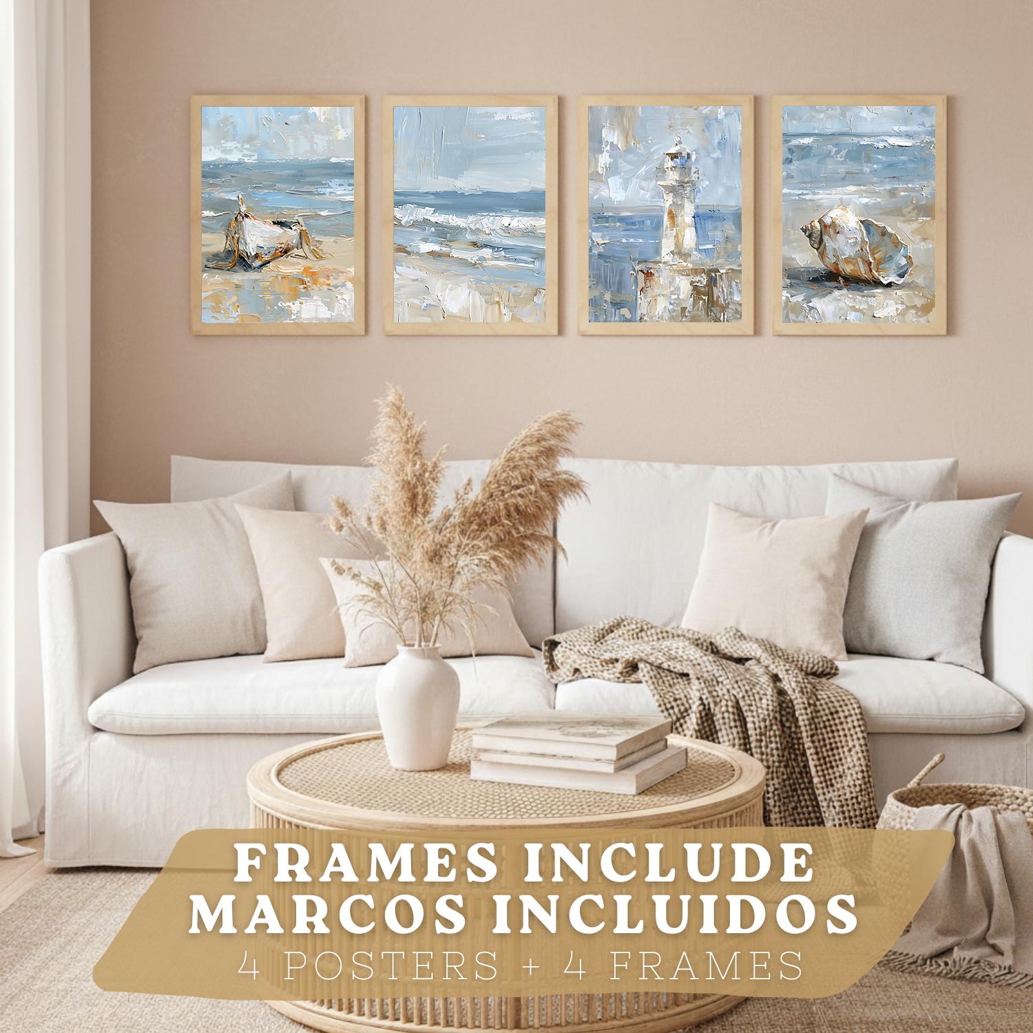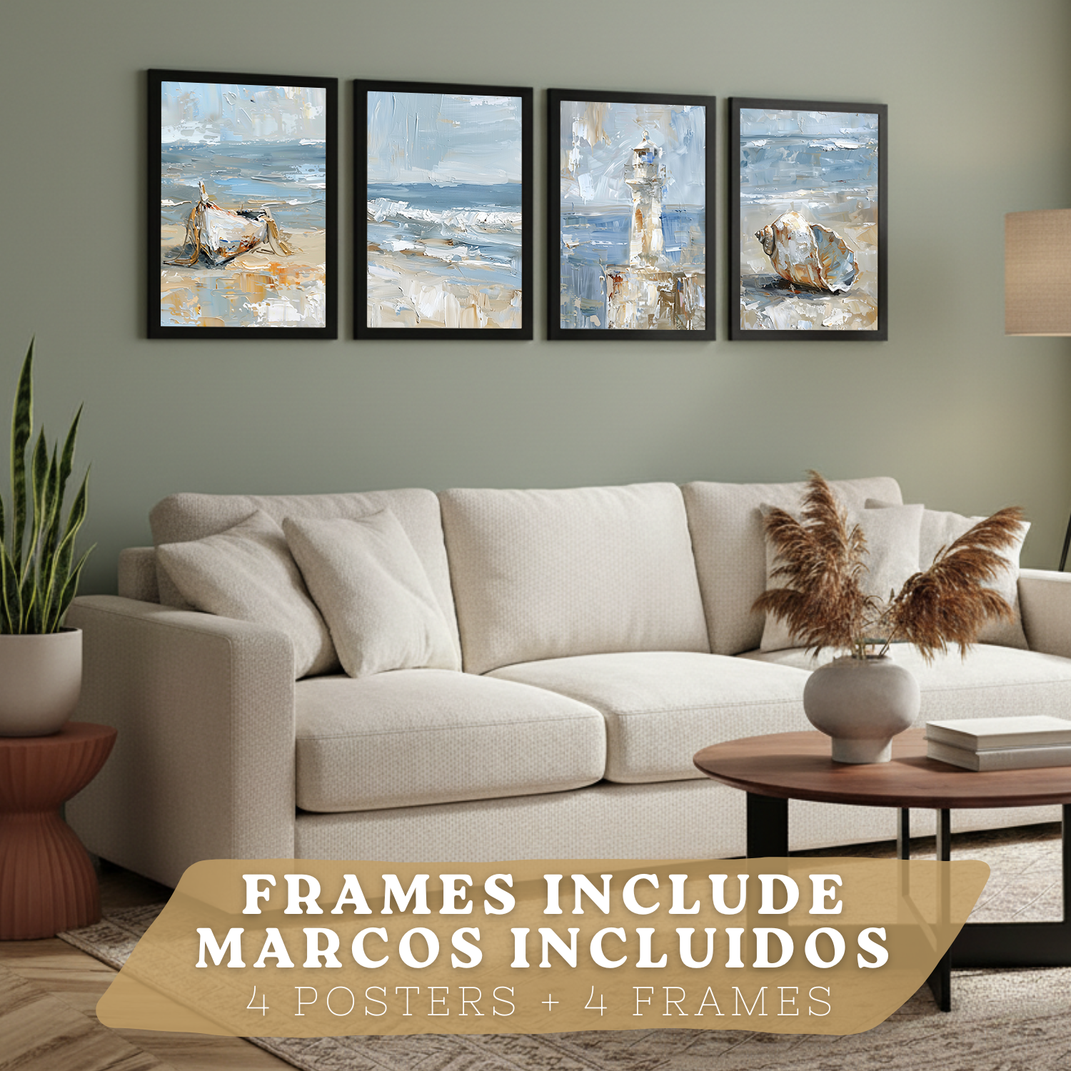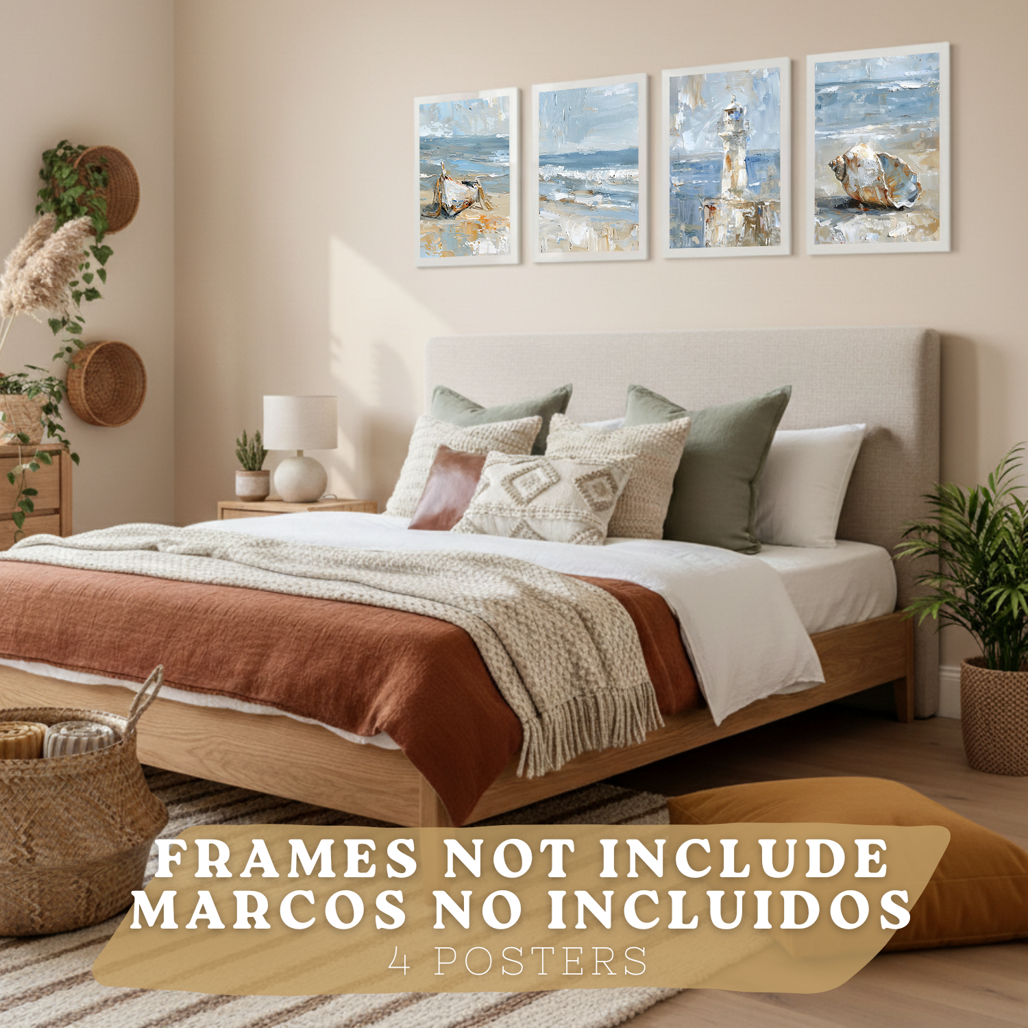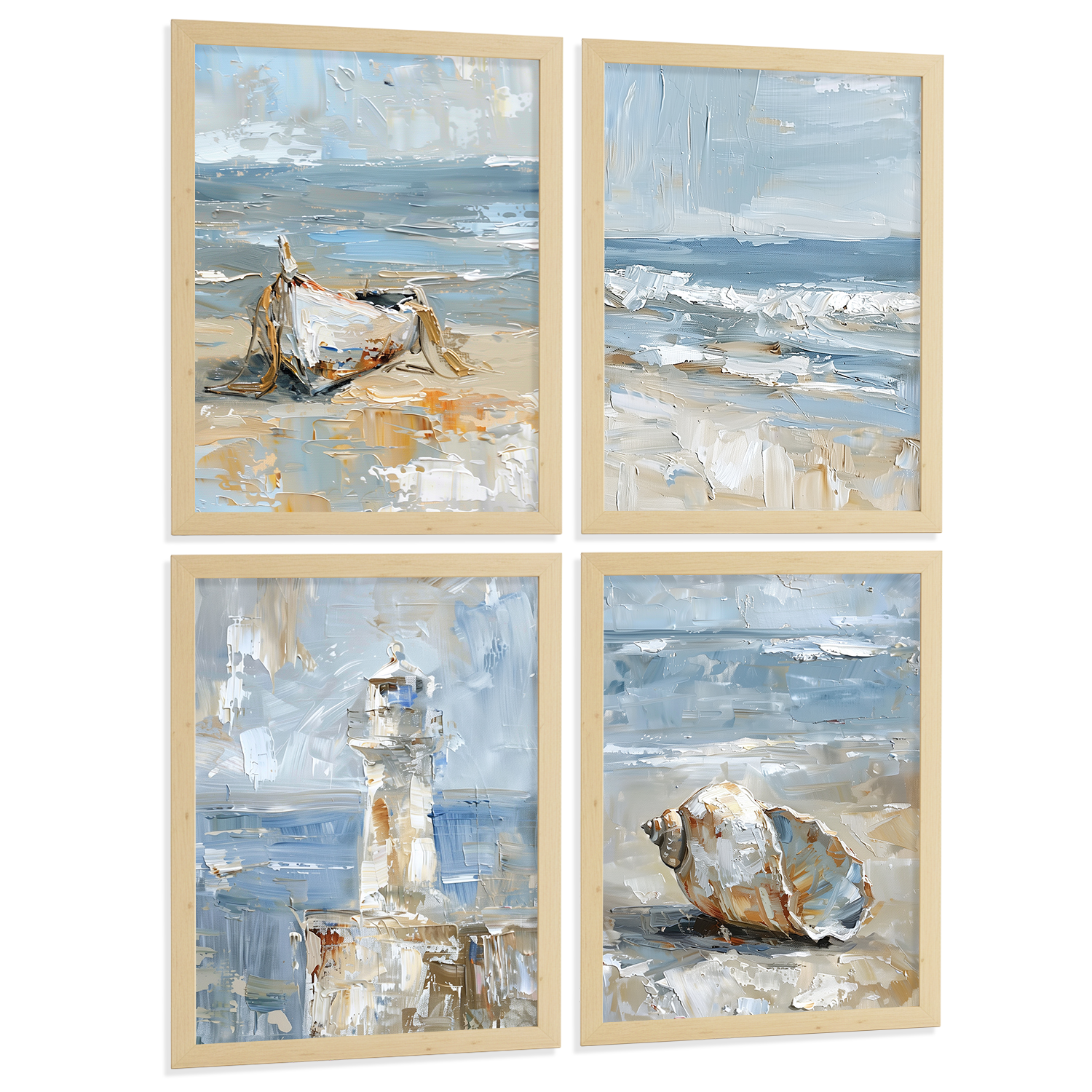 Nacnic Juego De 3 Cuadros De Playa, Mar, Costa Azul, Faro, Barca. Decoracion De Pared De Arte. Dia De Mar. Laminas Decorativas Pared Baño, Cocina,Salón Y Dormitorio