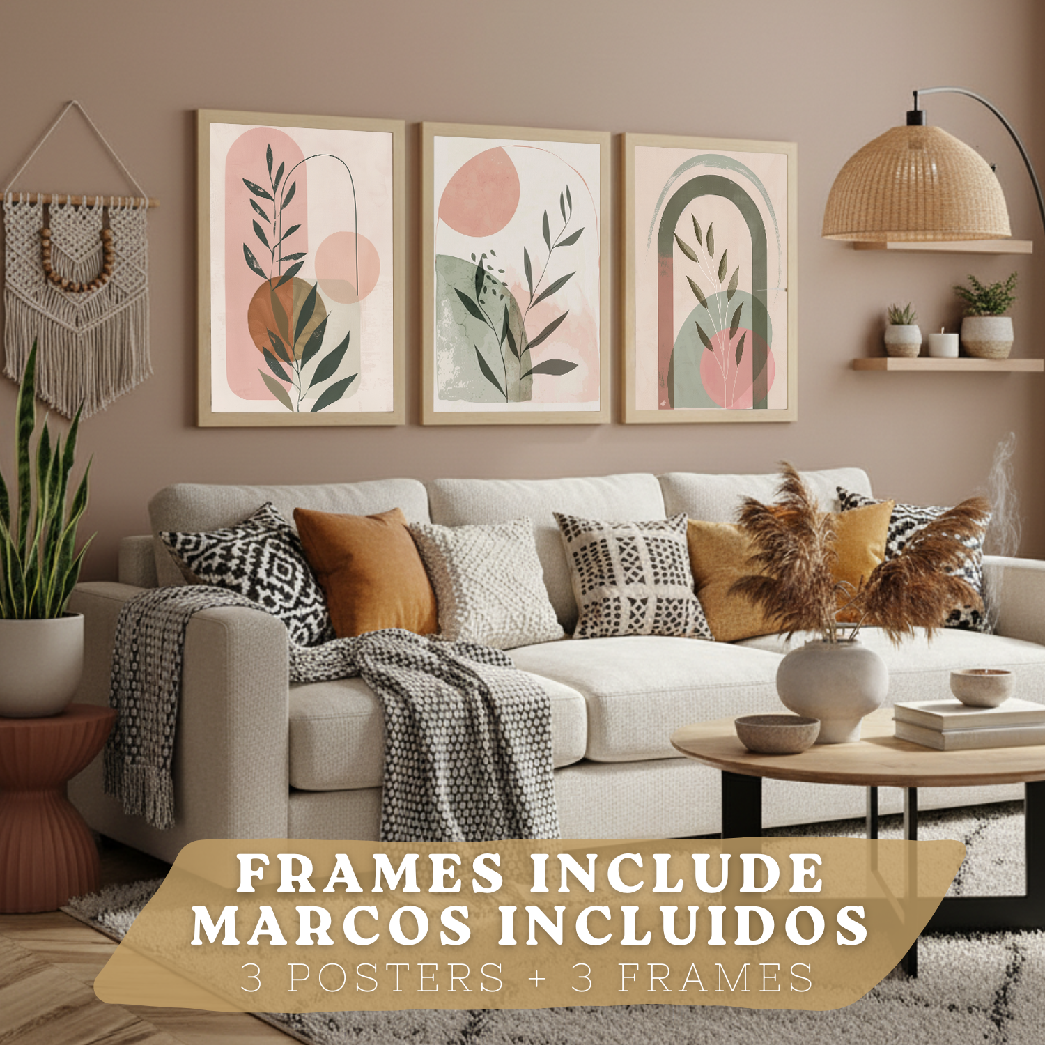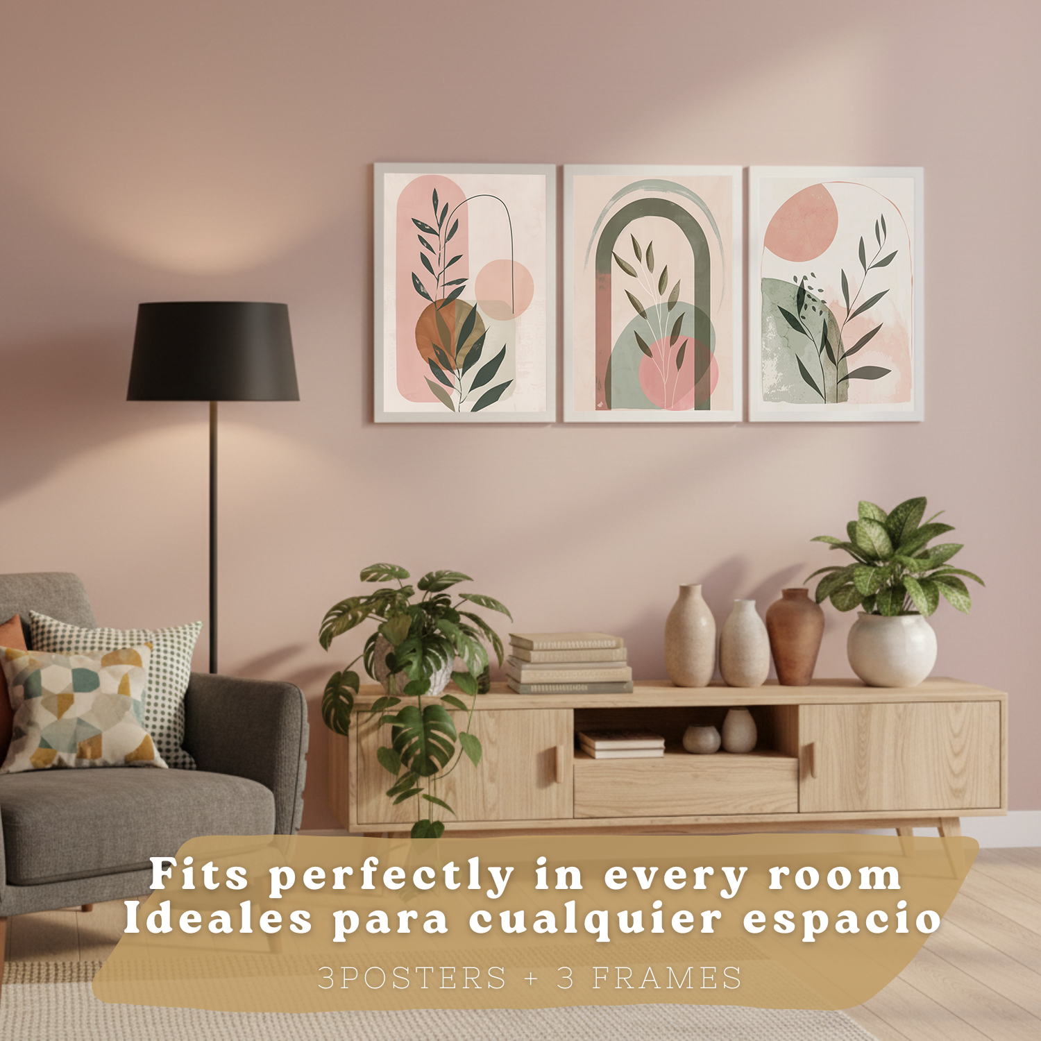 Nacnic Set De 3 Laminas Decorativas Pared Plantas Verde Rosa Pastel Para Cuadros Decoracion Salon Modernos Posters Para Pared Cuadros Decorativos Pared Motivos Florales