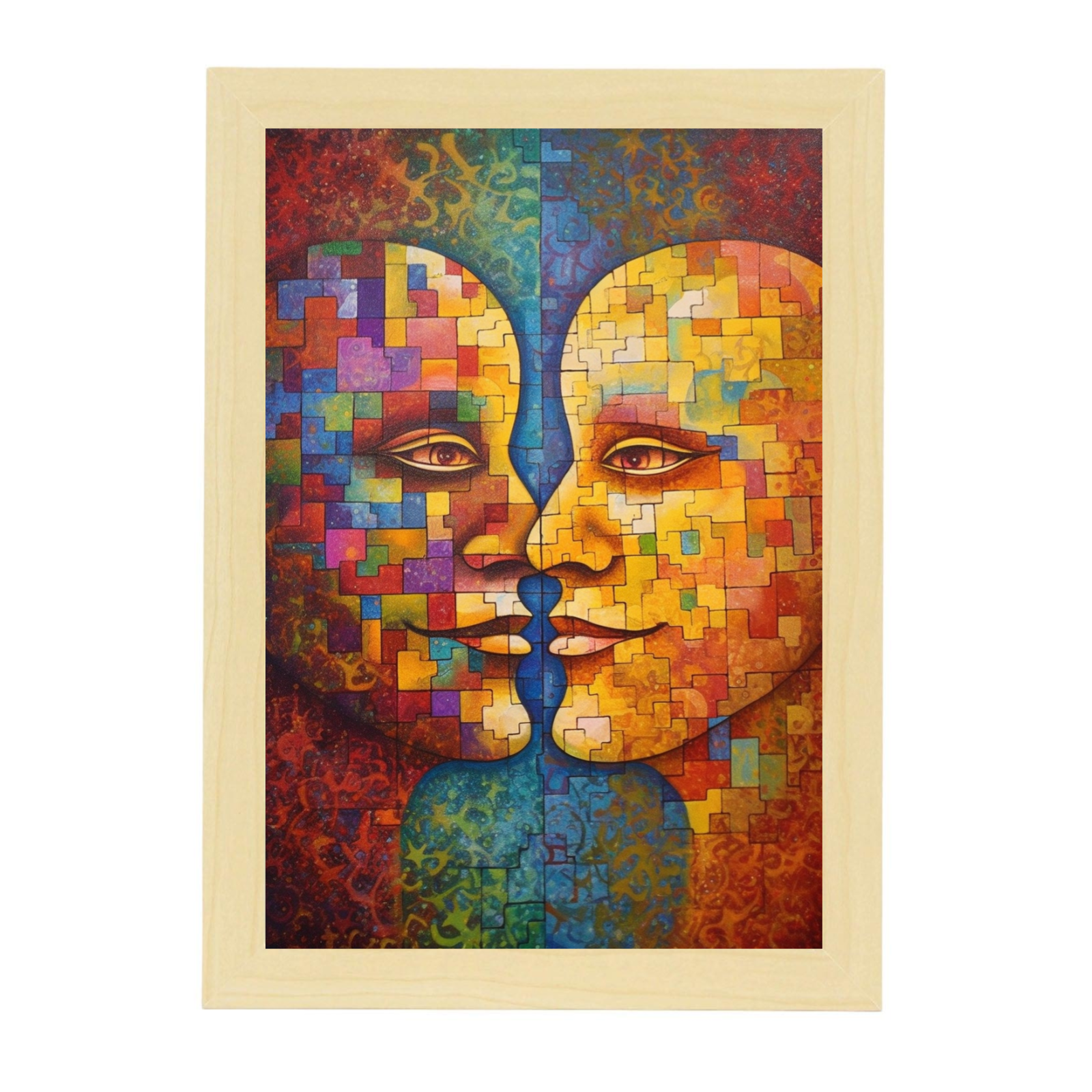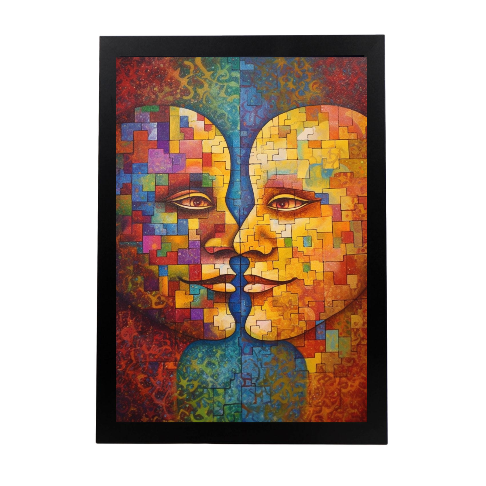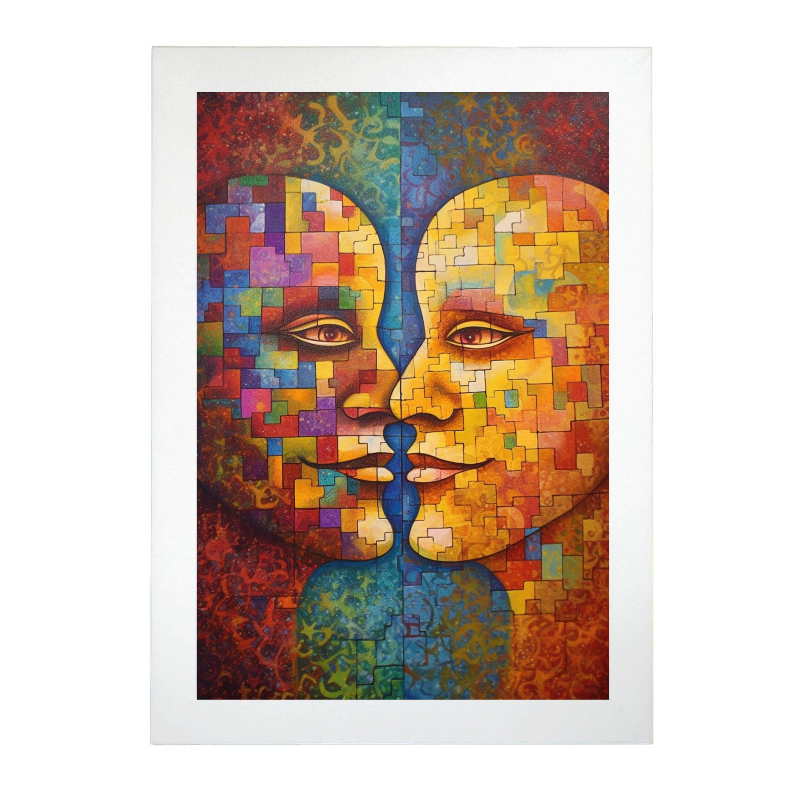 Lámina de Dos Cabezas y Rompecabezas Coloridos
