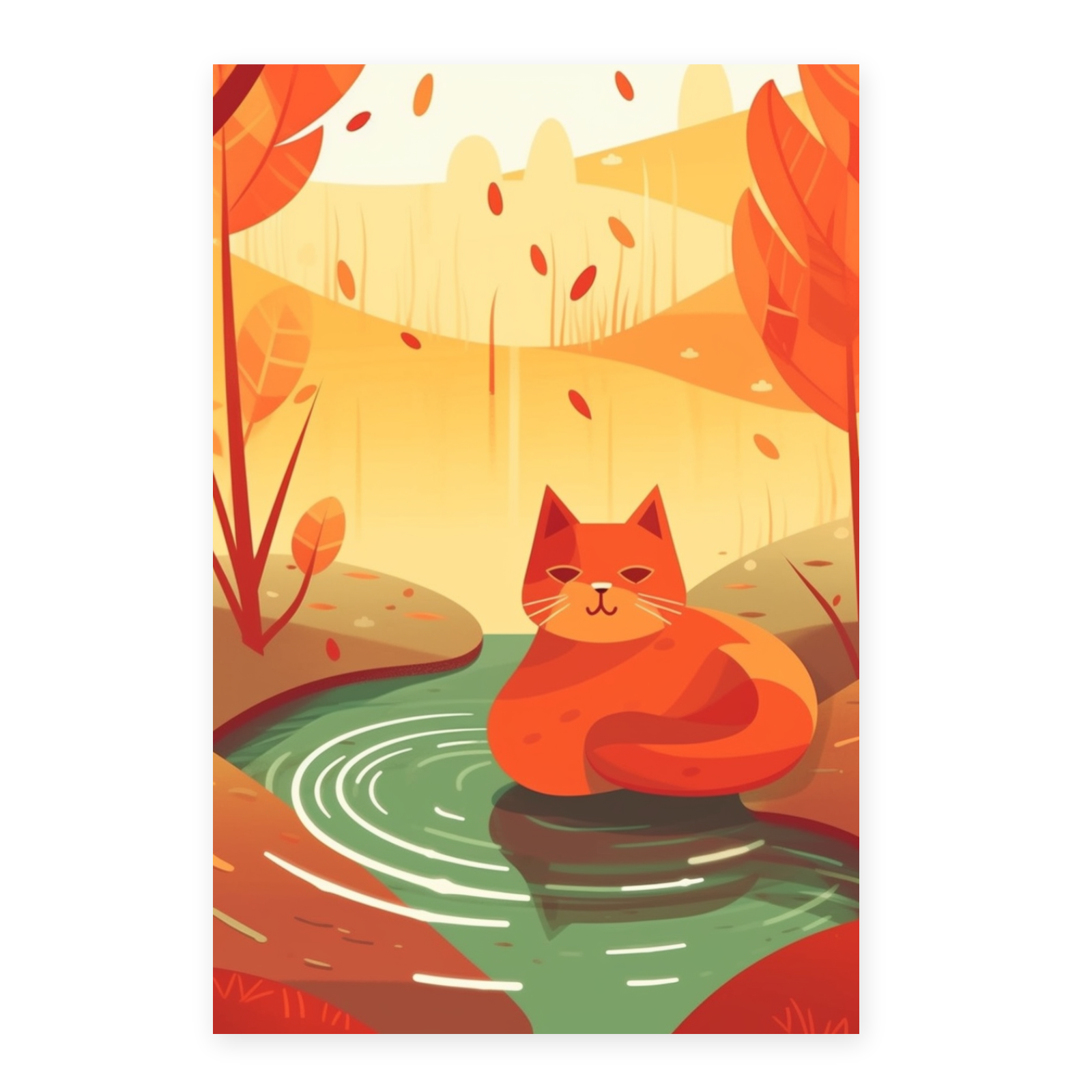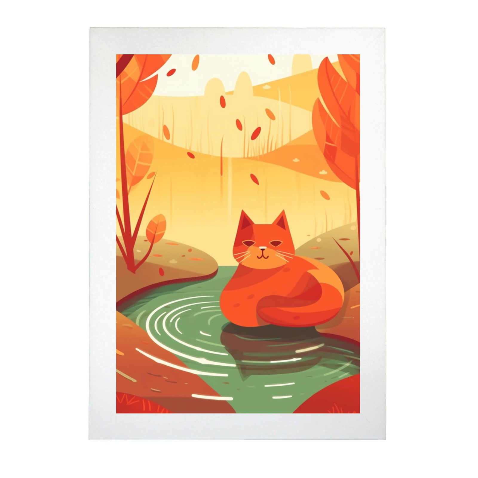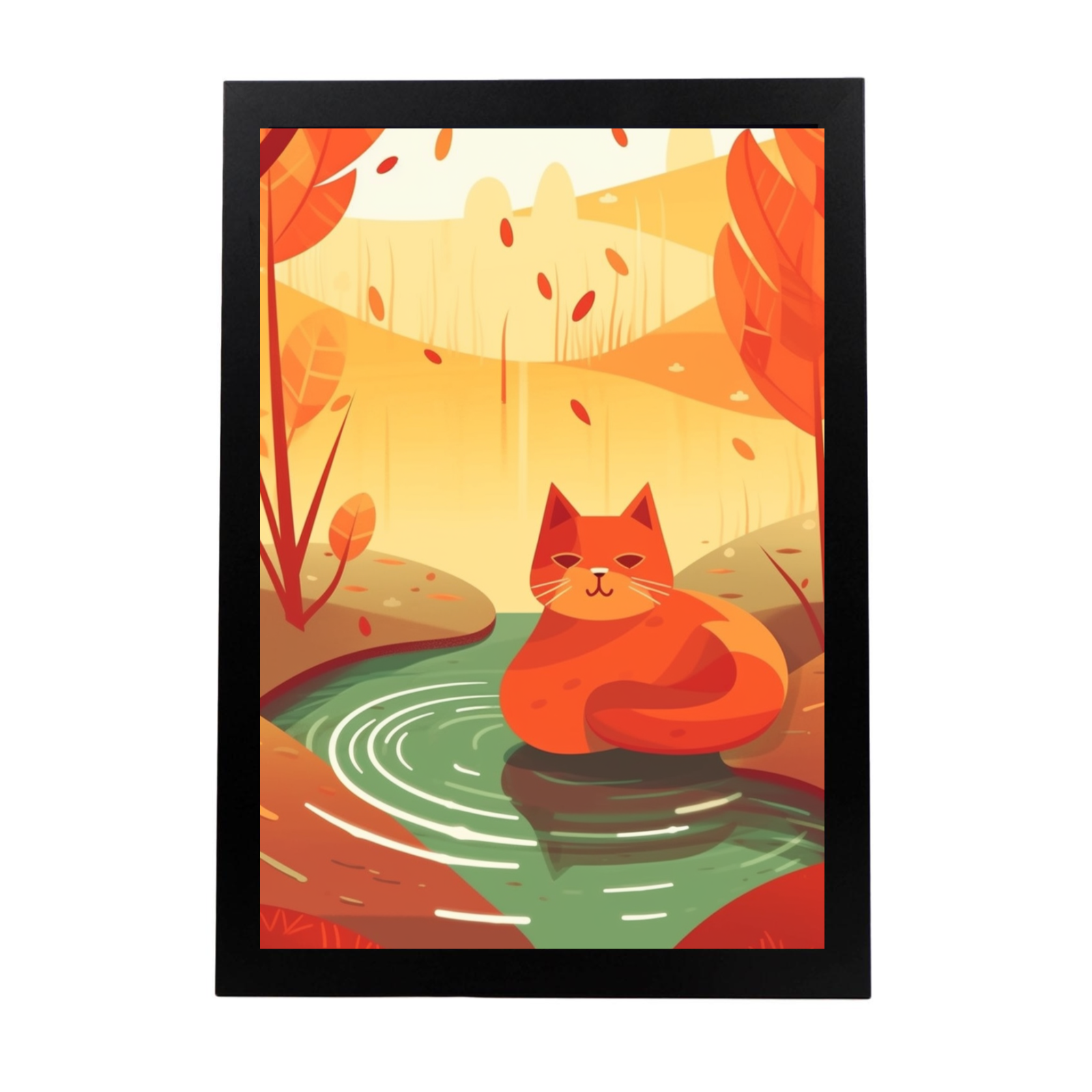 Póster Gato Lindo en Jardín Estilo Ryo Takemasa