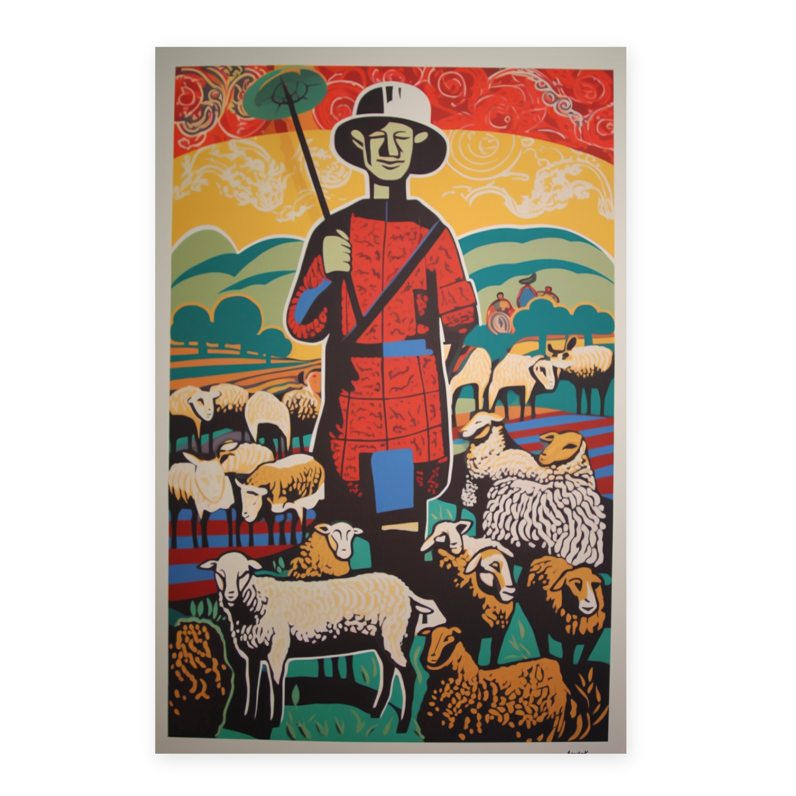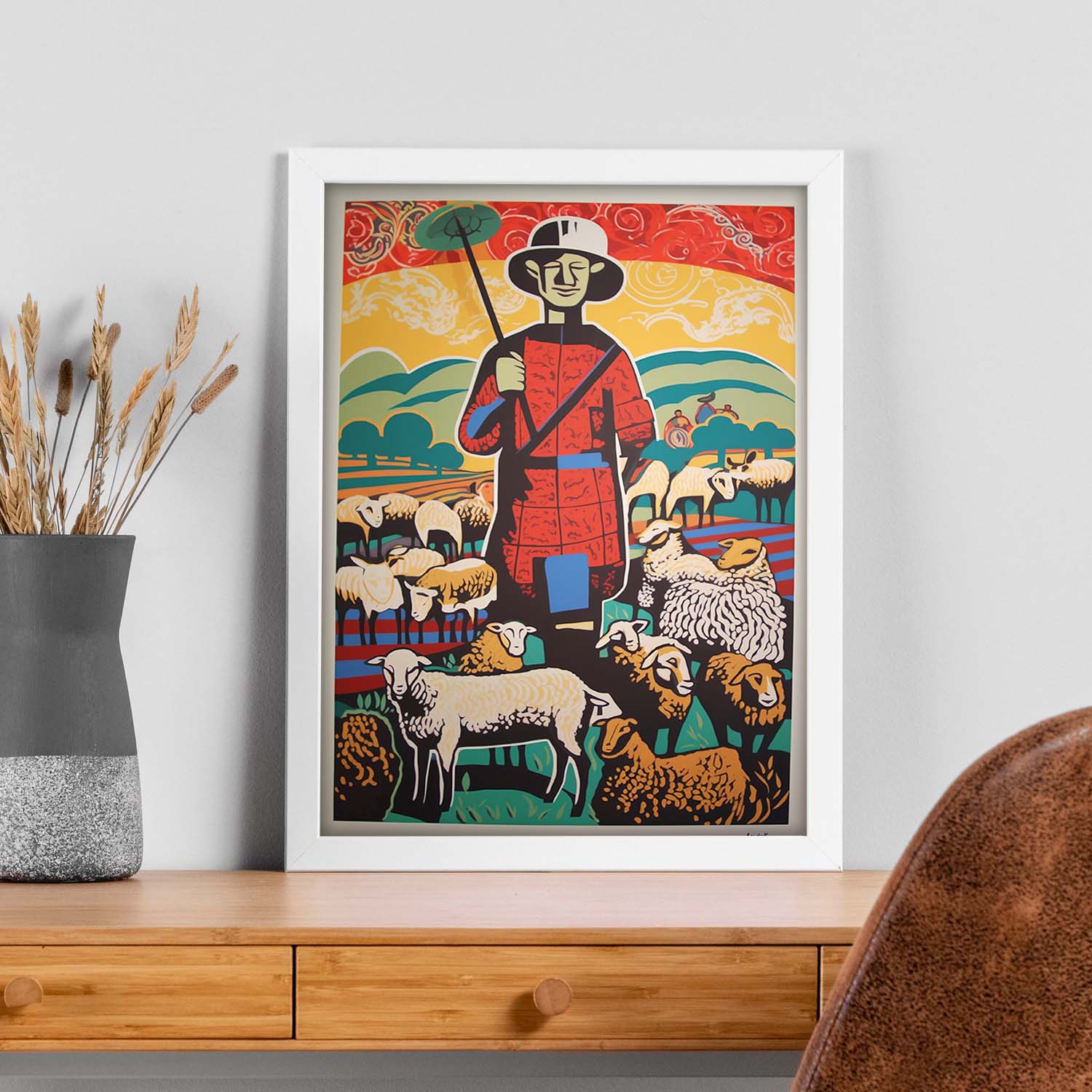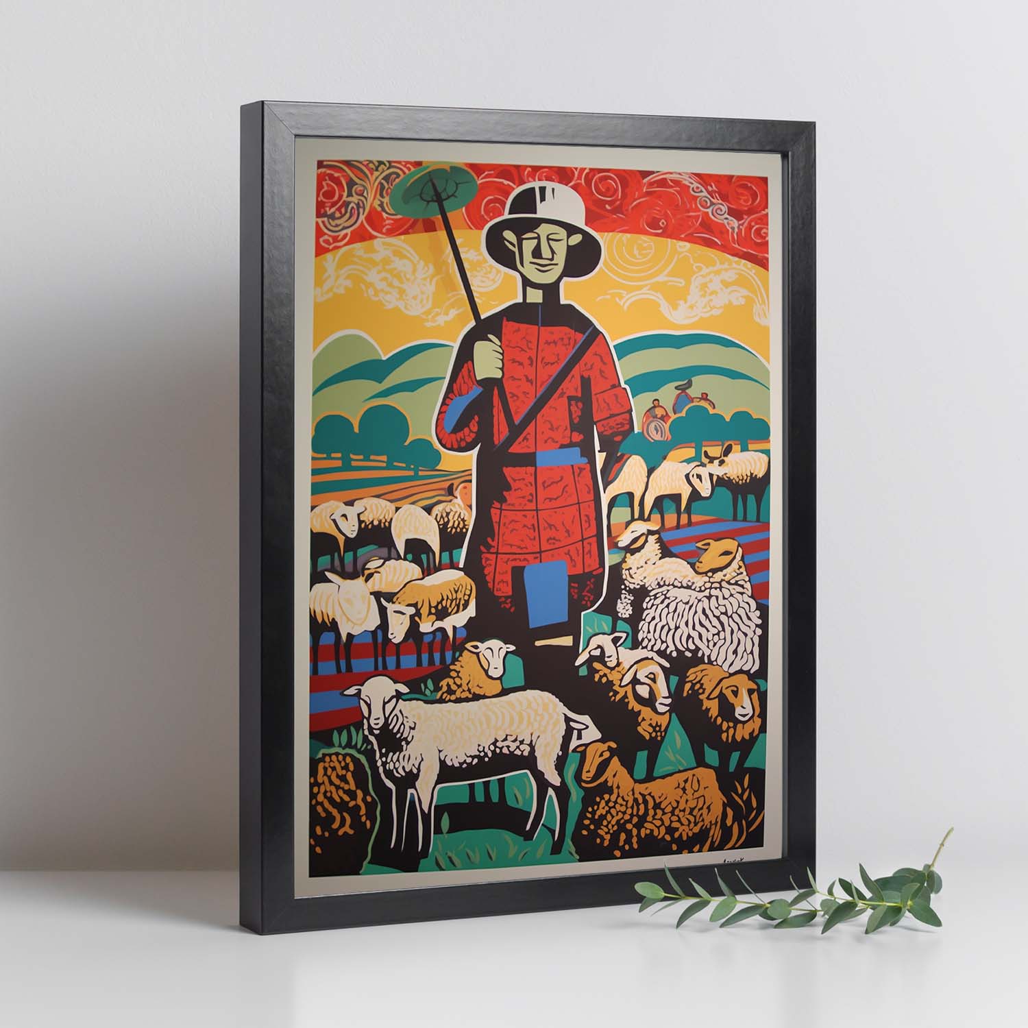 Póster de Oveja Disfrazada Cuidando Cosecha
