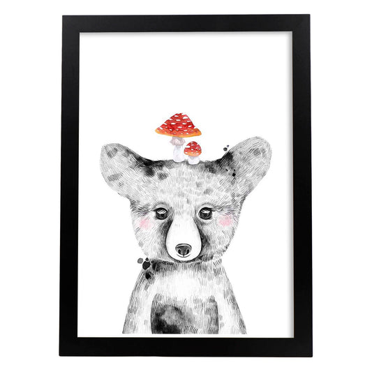 Lámina Infantil Oso Bebé y Setas