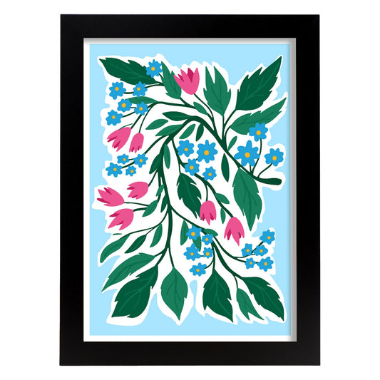 Lámina de Flores Azules y Rosas y Diseño Estético de Pared