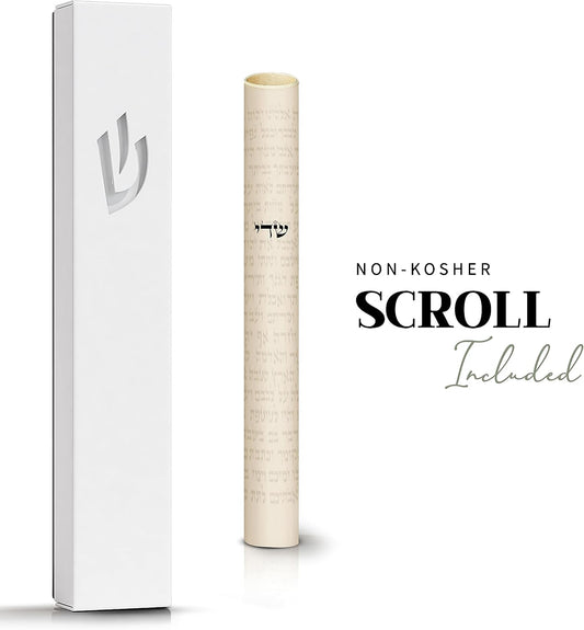 Funda clásica Mezuzah para interiores y exteriores | Mezuzah autoadhesiva blanca de 5 pulgadas con un pergamino no kosher y una caja de regalo | Funda judía contemporánea de Mezuzah Judaica regalo