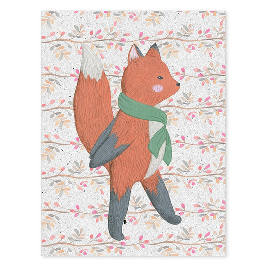 • Poster de animales con fondos coloridos. Lámina Papa Zorro paseando, con ilustraciones de animales.-Artwork-Nacnic-Nacnic Estudio SL