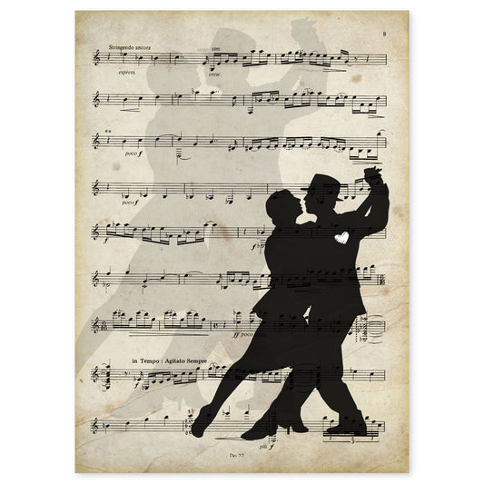 • Poster de Pareja bailando tango. Láminas de imágenes con partituras. Diseño de música para el hogar.-Artwork-Nacnic-Nacnic Estudio SL