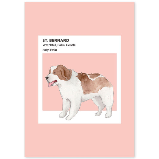 • Lámina San Bernardo. Pósters con ilustraciones de razas de perro en tonos cálidos y pastel.-Artwork-Nacnic-Nacnic Estudio SL