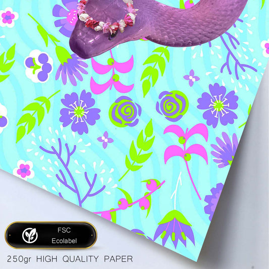 • Lámina Serpiente Funky. Pósters con collages de Pop Art. Fondos con coloridos patrones funky. Decoración de interiores. Tamaño A4.-Nacnic-Nacnic Estudio SL