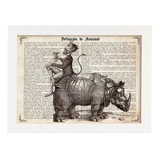 Lámina de Rinoceronte y Películas Antiguas en Acuarela