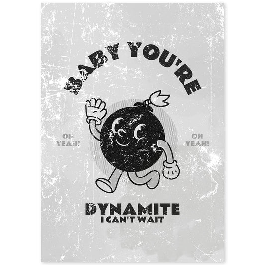 Lámina Eres Dinamita con Ilustraciones Retro en Grises