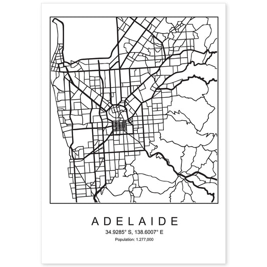 Lámina estilo nórdico de mapa de Adelaide en blanco y negro