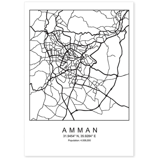 Lámina estilo nórdico de mapa de Amman en blanco y negro