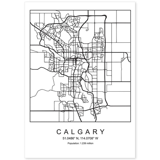 Lámina estilo nordico de mapa Calgary en blanco y negro