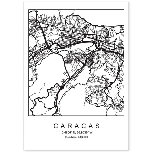 Lámina estilo nórdico de mapa Caracas en blanco y negro