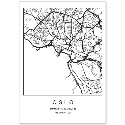 Lámina estilo nordico de la ciudad Oslo en blanco y negro