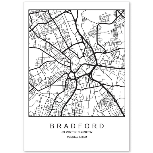 • Lámina mapa de la ciudad Bradford estilo nordico en blanco y negro.-Artwork-Nacnic-Nacnic Estudio SL