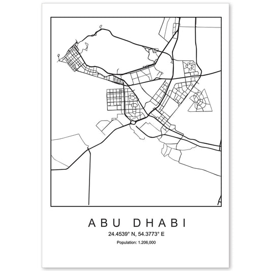 • Lámina mapa de la ciudad Abu dhabi estilo nordico en blanco y negro.-Artwork-Nacnic-Nacnic Estudio SL