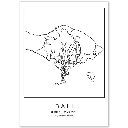• Lámina mapa de la ciudad Bali estilo nordico en blanco y negro.-Artwork-Nacnic-Nacnic Estudio SL